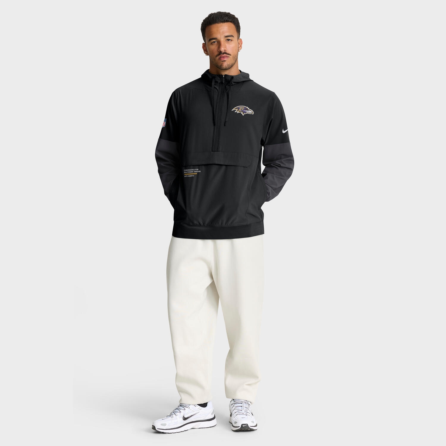 Nike Men's NFL American Football Alternate 1/2-Zip Anorak Jacket from the Baltimore Ravens from the official 2025 NFL On-Field Sideline collection.