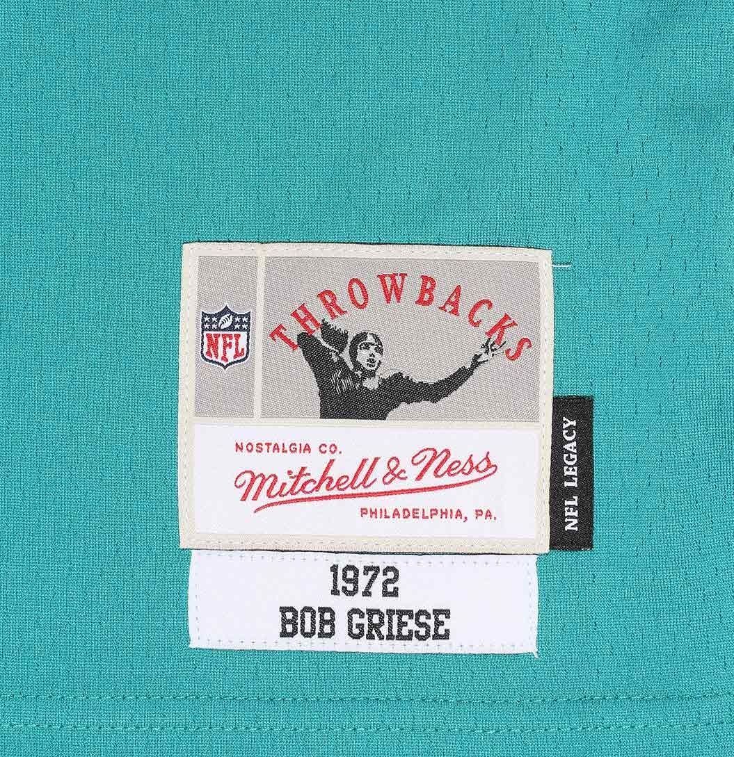 Mitchell & Ness Men's 1972 Legacy NFL Throwback American Football Jersey from Bob Griese, Quarterback Legend for the Miami Dolphins.