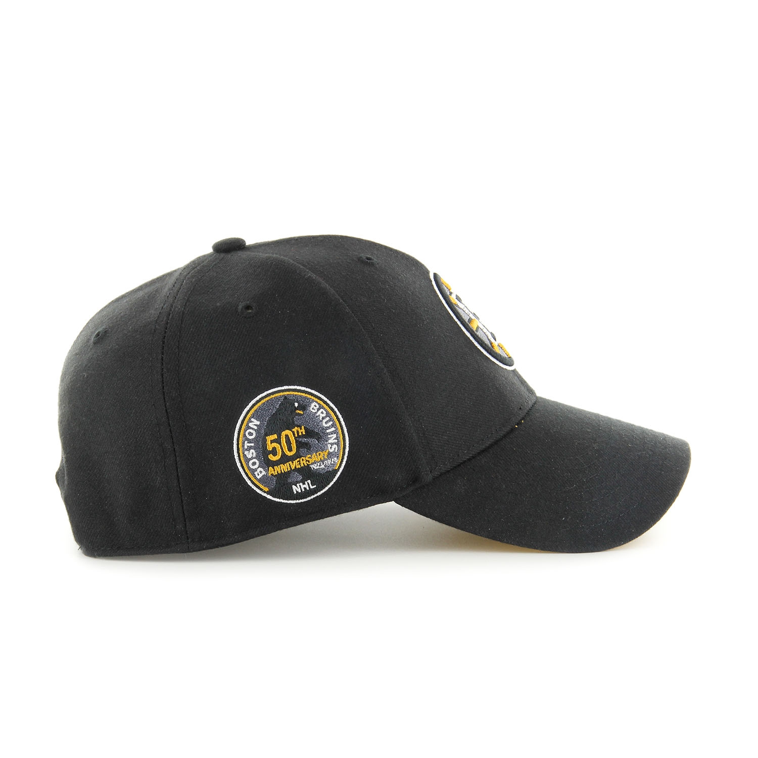 '47 NHL Sure Shot Vintage MVP Adjustable Fit Hockey Hat Alternate from your Boston Bruins with 50th Anniversary Patch.