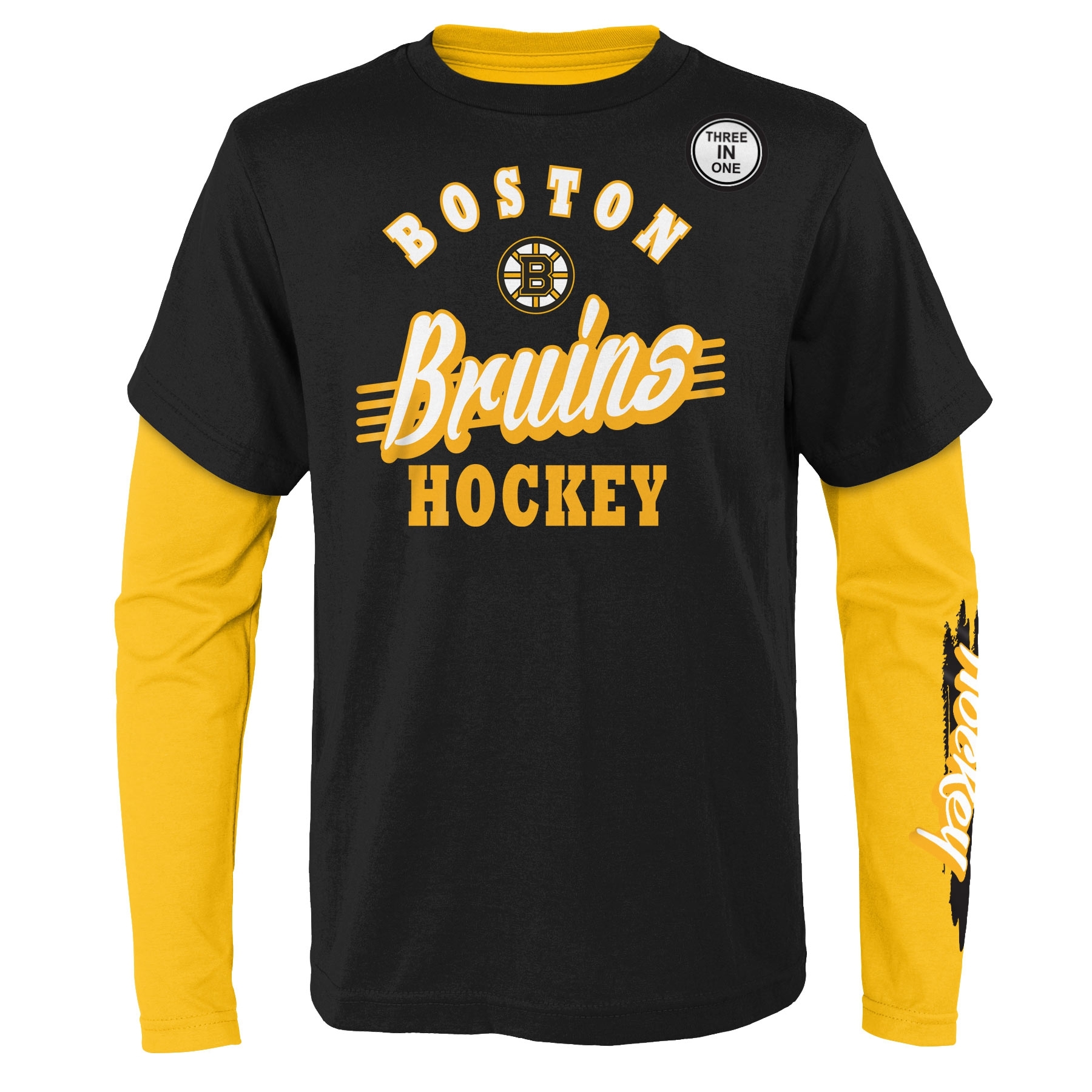 Outerstuff NHL Youth 3-in-1 Combo Shirt Set from your Boston Bruins with T-Shirt and Long Sleeve. Sized for Kids and Youth.