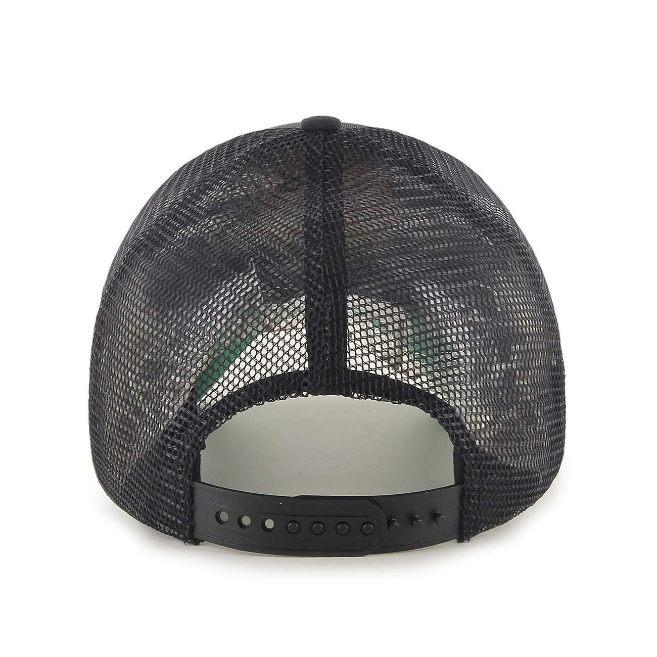 Featuring Boston Bruins team logo on front. '47 Brand logo on left side. Snapback closure, green undervisor and trucker mesh on sides and back.
