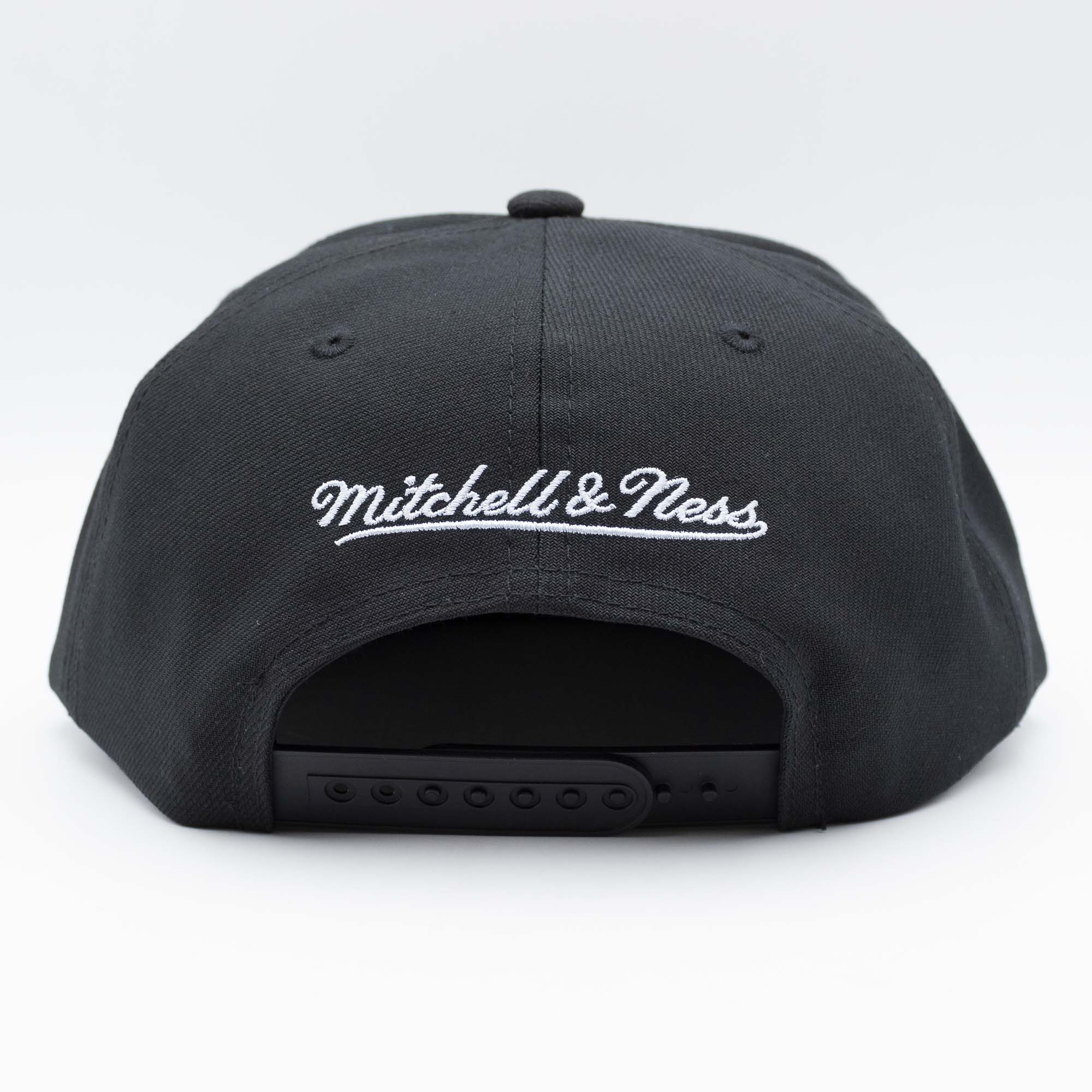 Mitchell & Ness Original Fit Snapback profile with a high structured crown and small, flat visor. Stitched eyelets for breathability. Interior includes branded taping as well as a moisture absorbing sweatband. A snapback closure for an adjustable fit.