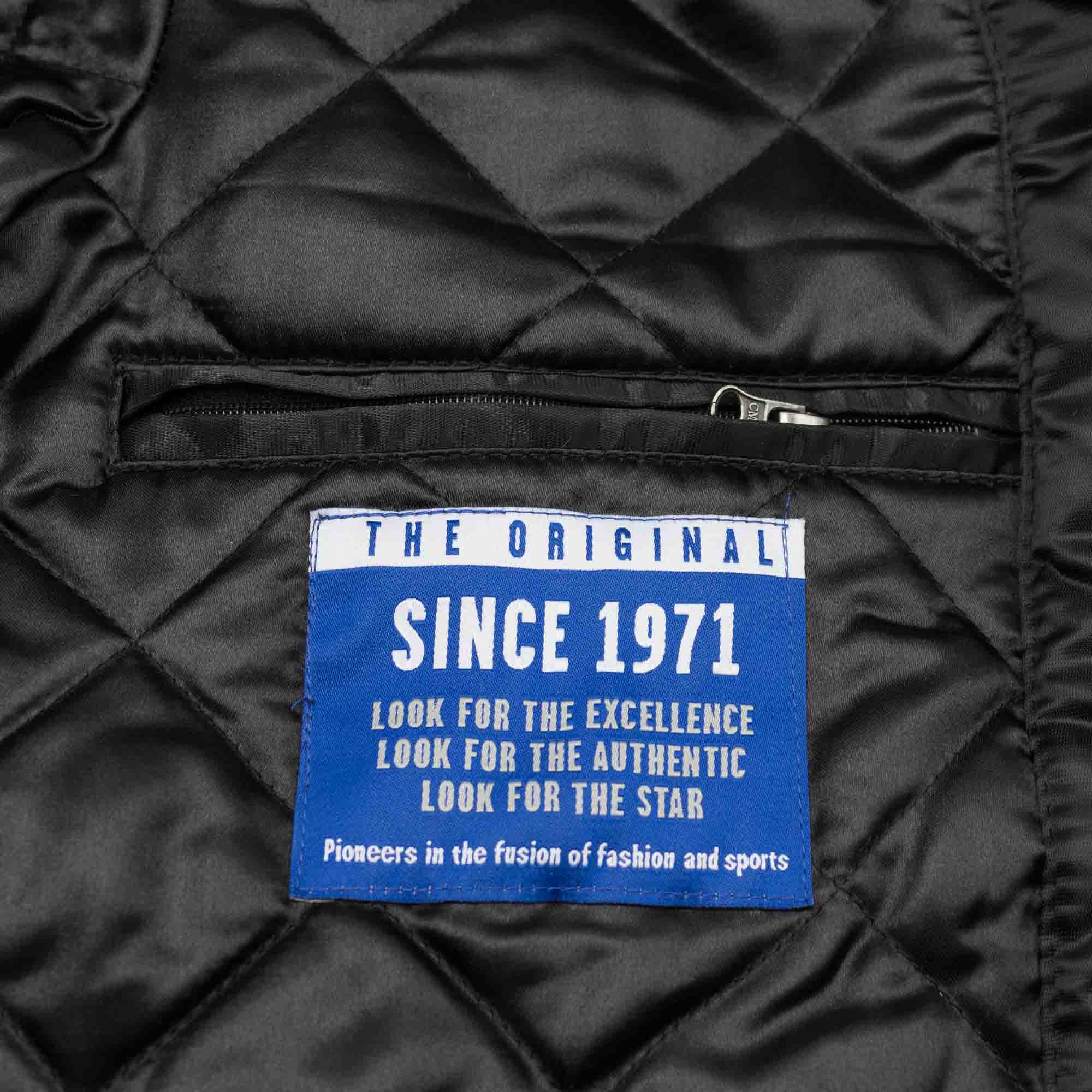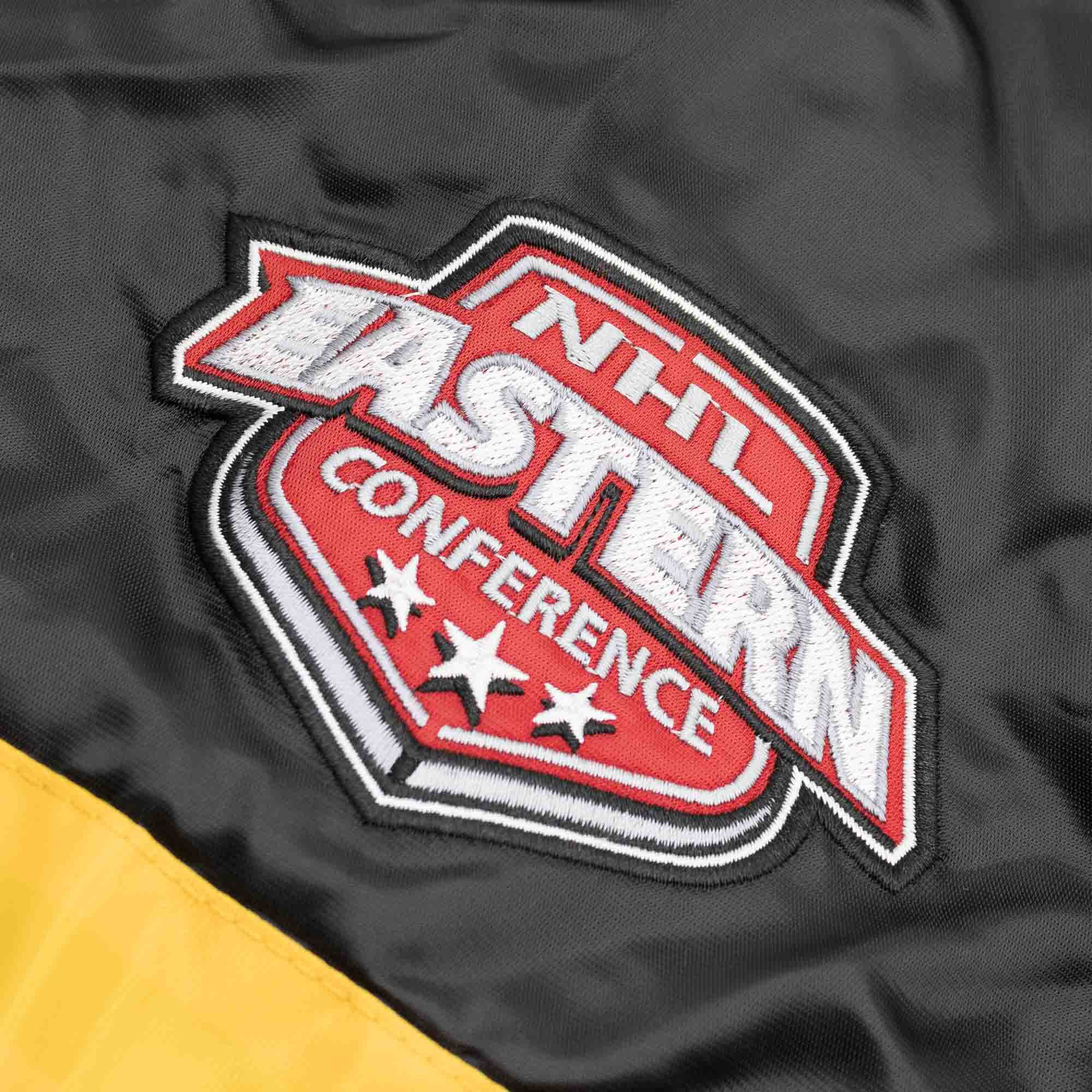 This Starter Varsity Satin Jacket comes in a modern US sports design and impresses with the fully embroidered team applications and the contrasting stripes on the shoulders. The front of the jacket features large Boston Bruins team lettering, the back is decorated with the oversized team logo. The unique starter design is rounded off with the conference logo on the right sleeve. The legendary Starter logo can be found on the left sleeve as a high-quality embroidery, as well as in the collar and on the inside pocket as a sewn-on label.