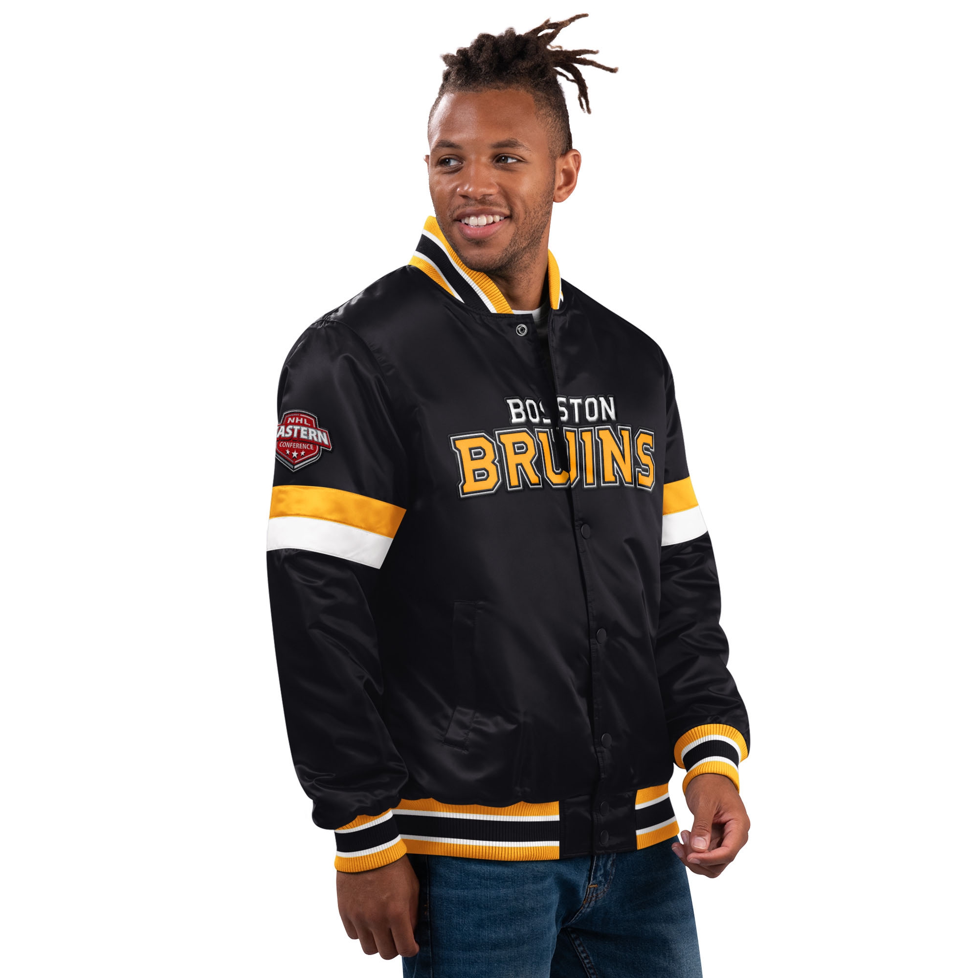 Starter NHL Men's Home Game Varsity Jacket from your Boston Bruins.