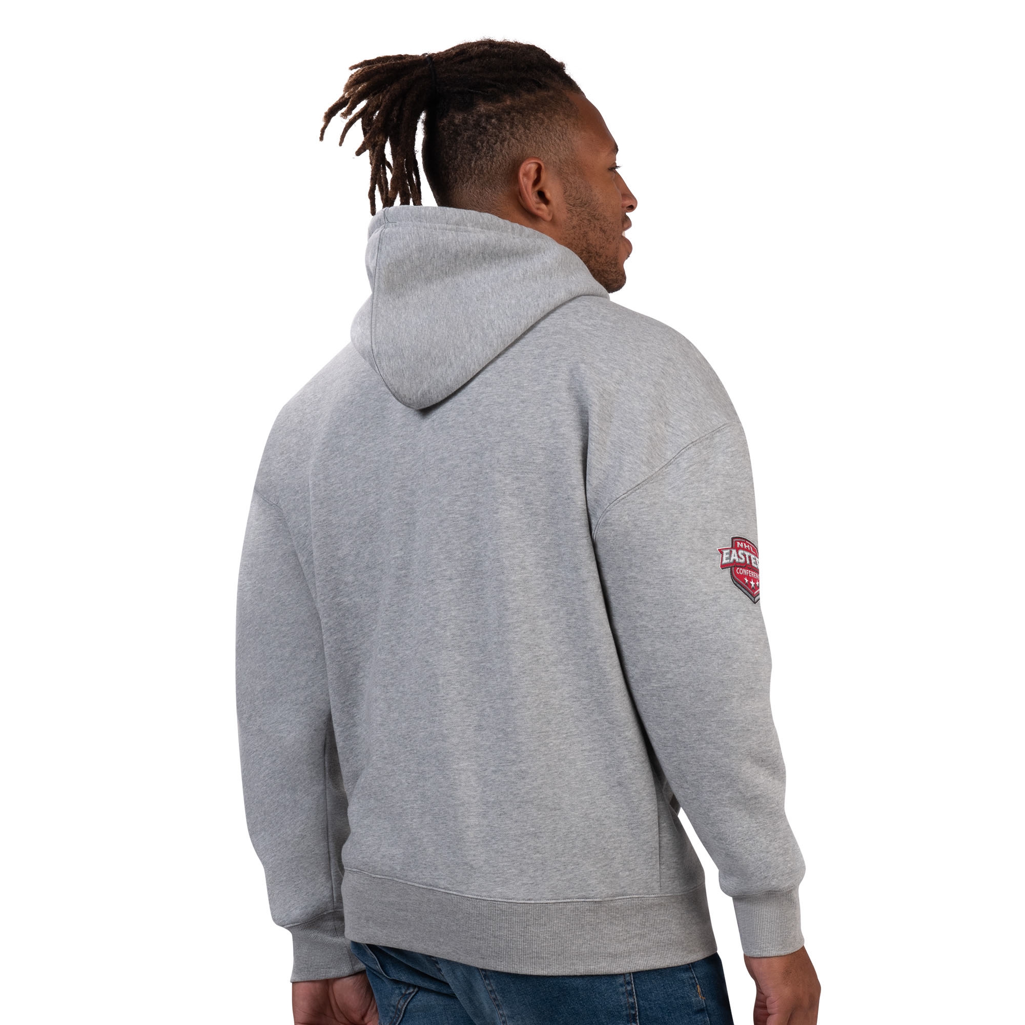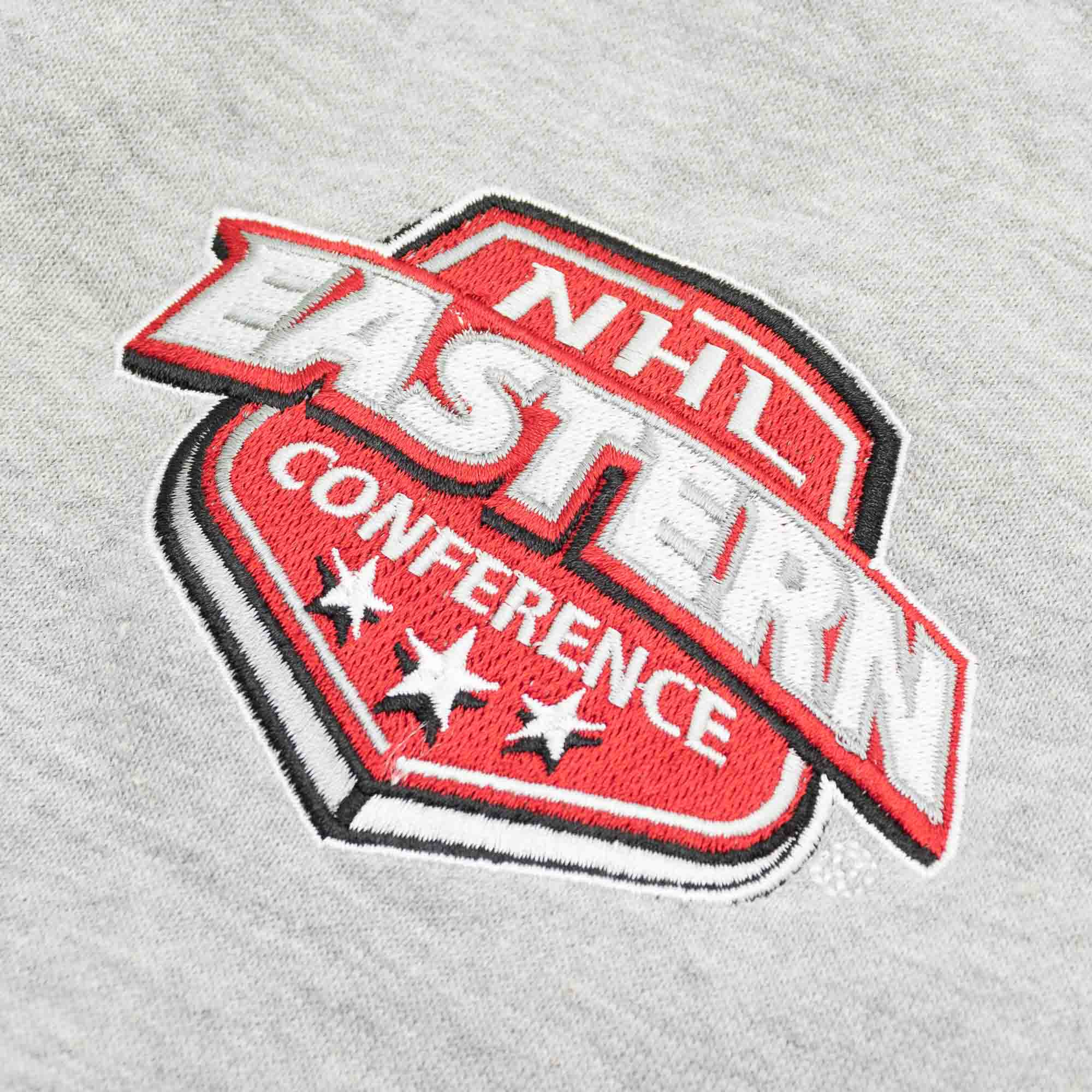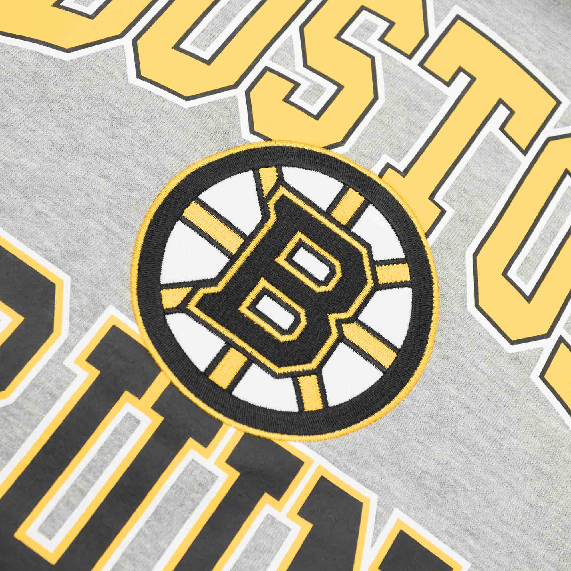 The hooded sweater is embroidered with a Boston Bruins team logo on front combined with a large BOSTON BRUINS lettering print. The official confernce logo adorns the right sleeve as a high-quality embroidery piece.