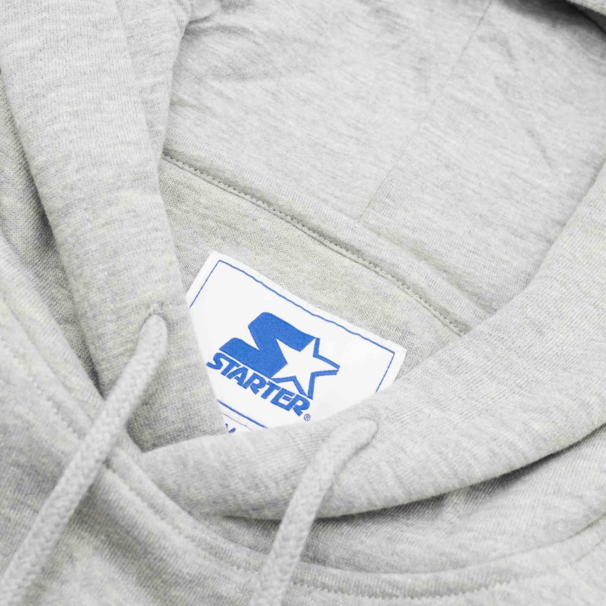 This Starter premium fleece hoodie offers high quality workmanship combined with a gray team design. Attached hood, front pocket and soft cotton-polyester fleece ensure a comfortable fit. The legendary Starter look is rounded off with the embroidered Star logo on the sleeve hem.