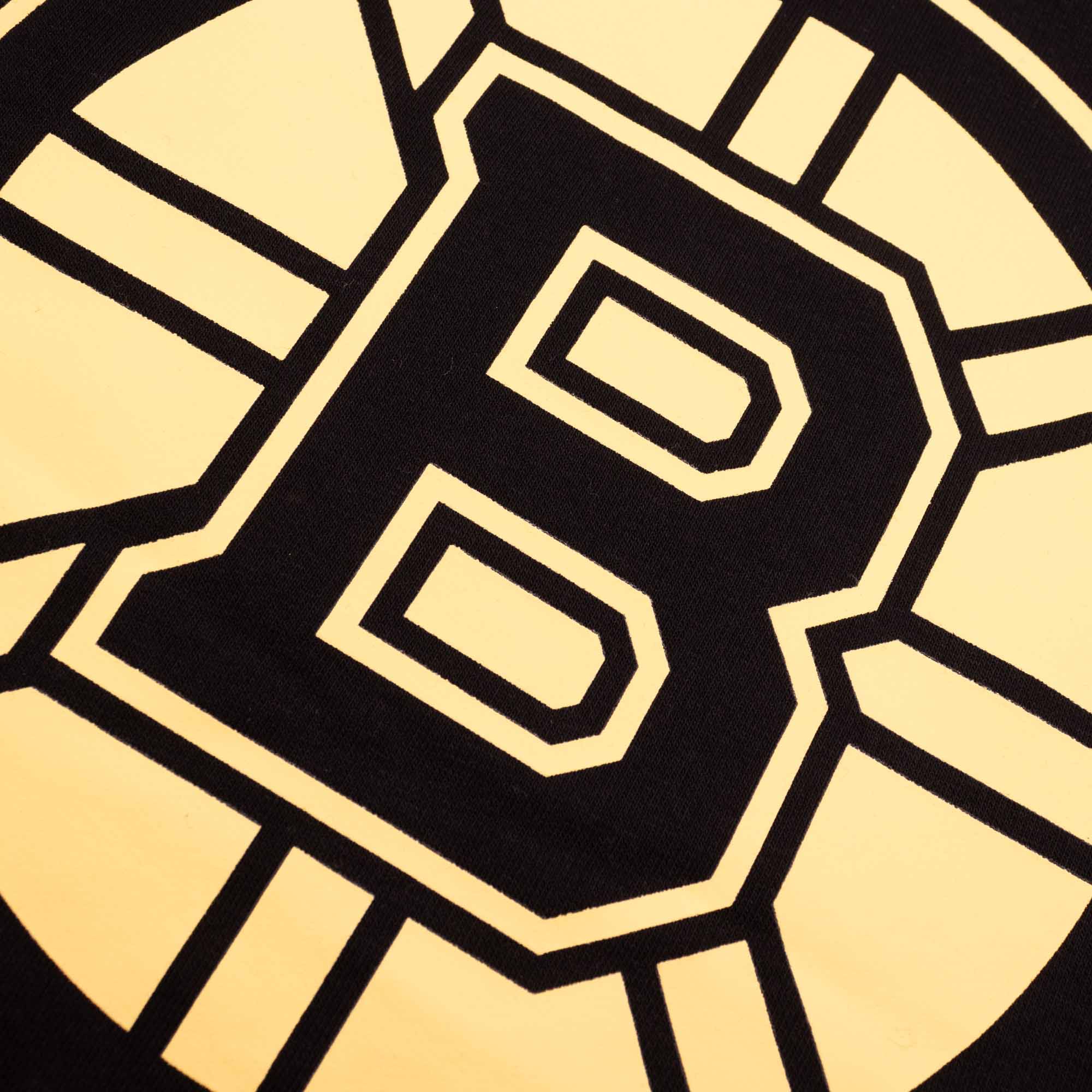 The '47 Helix NHL pullover hoodie is made from a mid-weight poly cotton fabric with french terry interior. Heavy ribbed details at the cuffs. Tonal Boston Bruins team logo print on front.