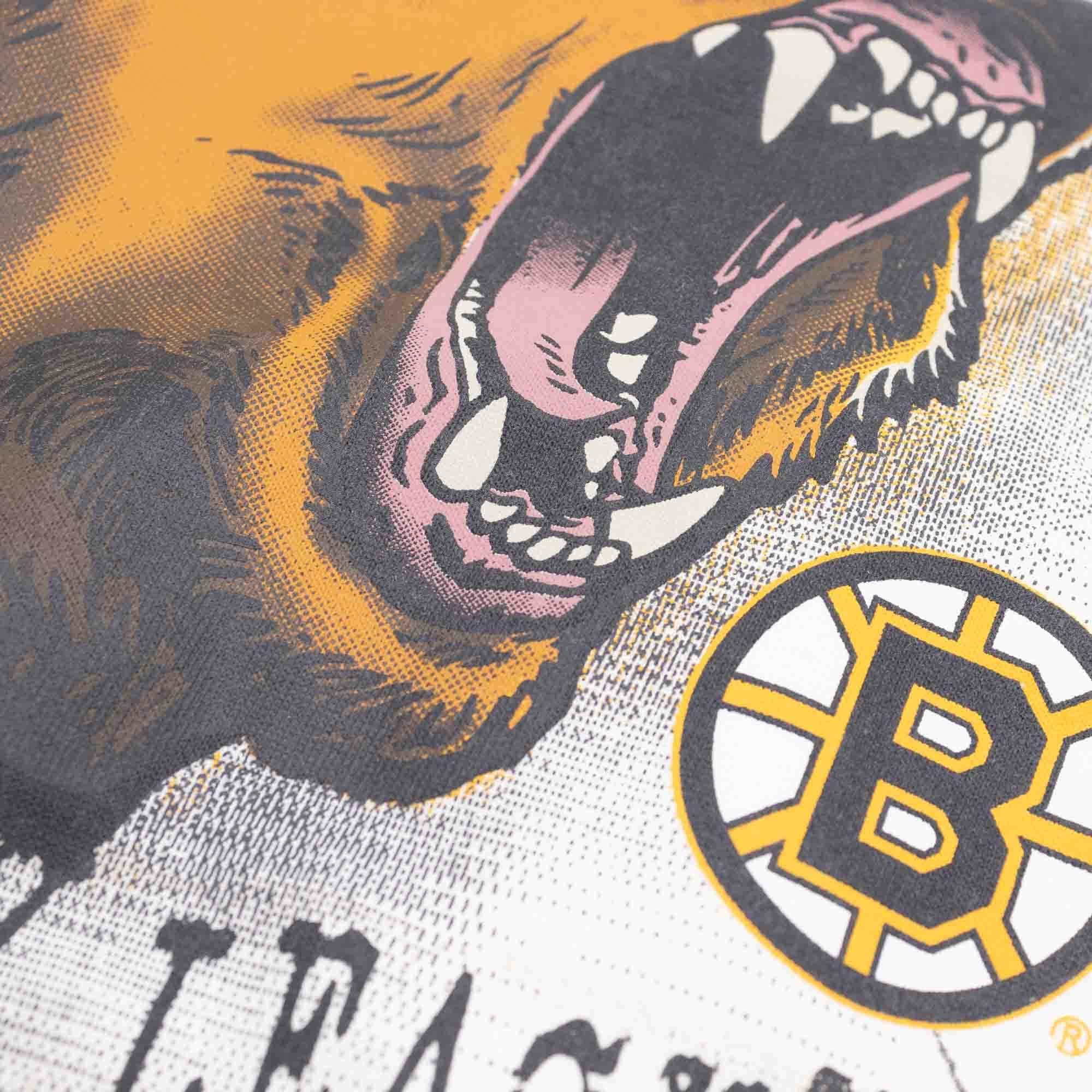 '47 NHL Men's Drop Shoulder Heavyweight Ice Hockey T-Shirt from your Boston Bruins featuring a Vintage Logo Front Print.