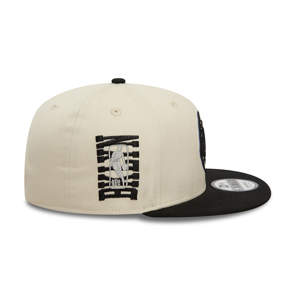 This two-tone New Era hat features Brooklyn Nets team logo on the front panel. The basketball design is completed with NBA logo embroidery on right cap panel.