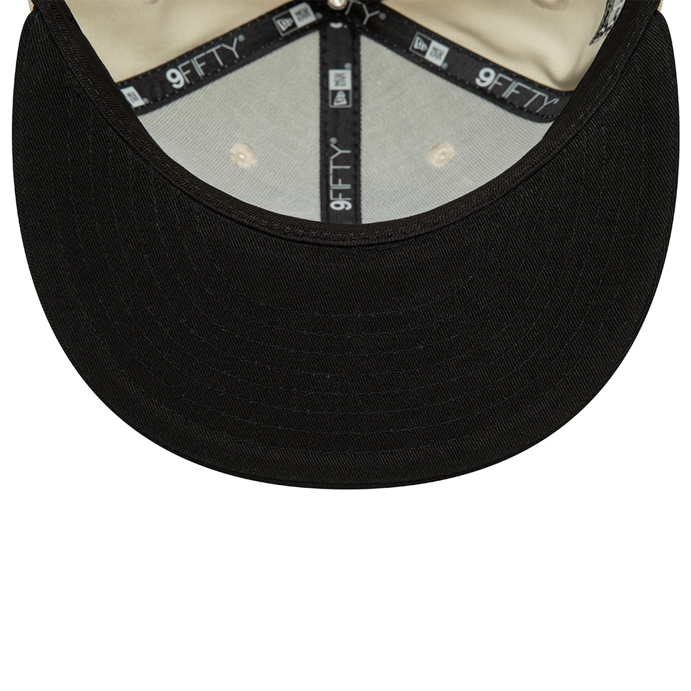 Classic 9FIFTY profile with a high structured crown and flat visor. New Era logo embroidered on left side. Stitched eyelets for breathability. Interior includes branded taping as well as a moisture absorbing sweatband. A snapback closure for an adjustable fit.