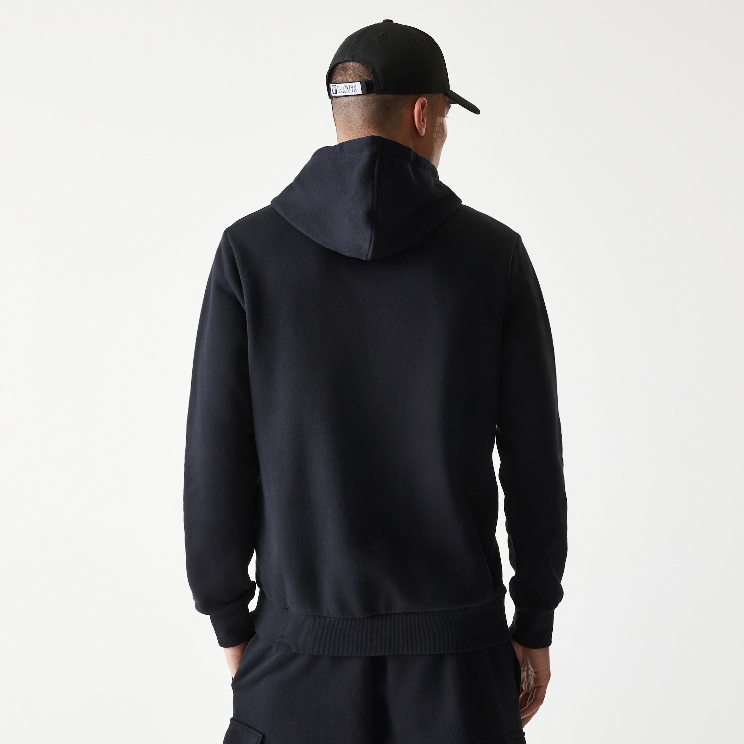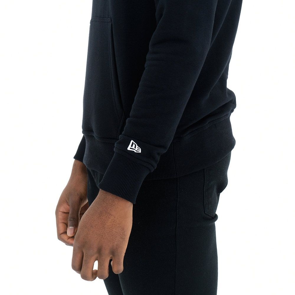 Premium Pull-over long sleeve hooded sweatshirt by New Era. Screenprinted Brooklyn Nets team logo and team wording on center front chest. Team colored New Era flag embroidery on left cuff. With kangaroo hand pocket, attatched hood and drawcord strings. Rib crew neck with interior taping for a comfortable fit. French terry lining on inside.