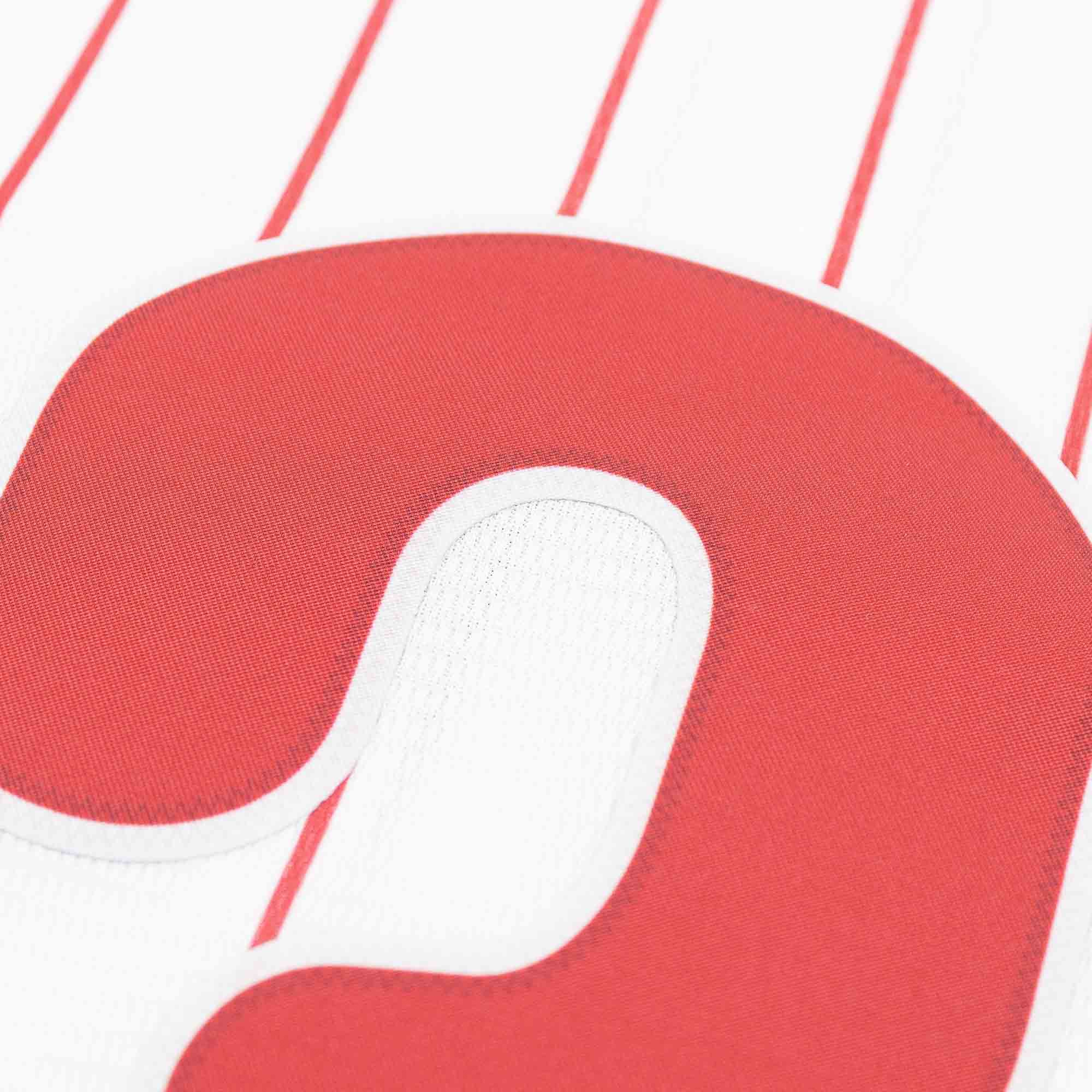 This official Philadelphia Phillies player jersey by Nike brings you close to your idol Bryce Harper. The back of this baseball jersey is decorated with the player name HARPER and the player number 3. The team designed letters and numbers are applied as tackle twill patches and offer an impressive design for every baseball fan with their high-quality workmanship.