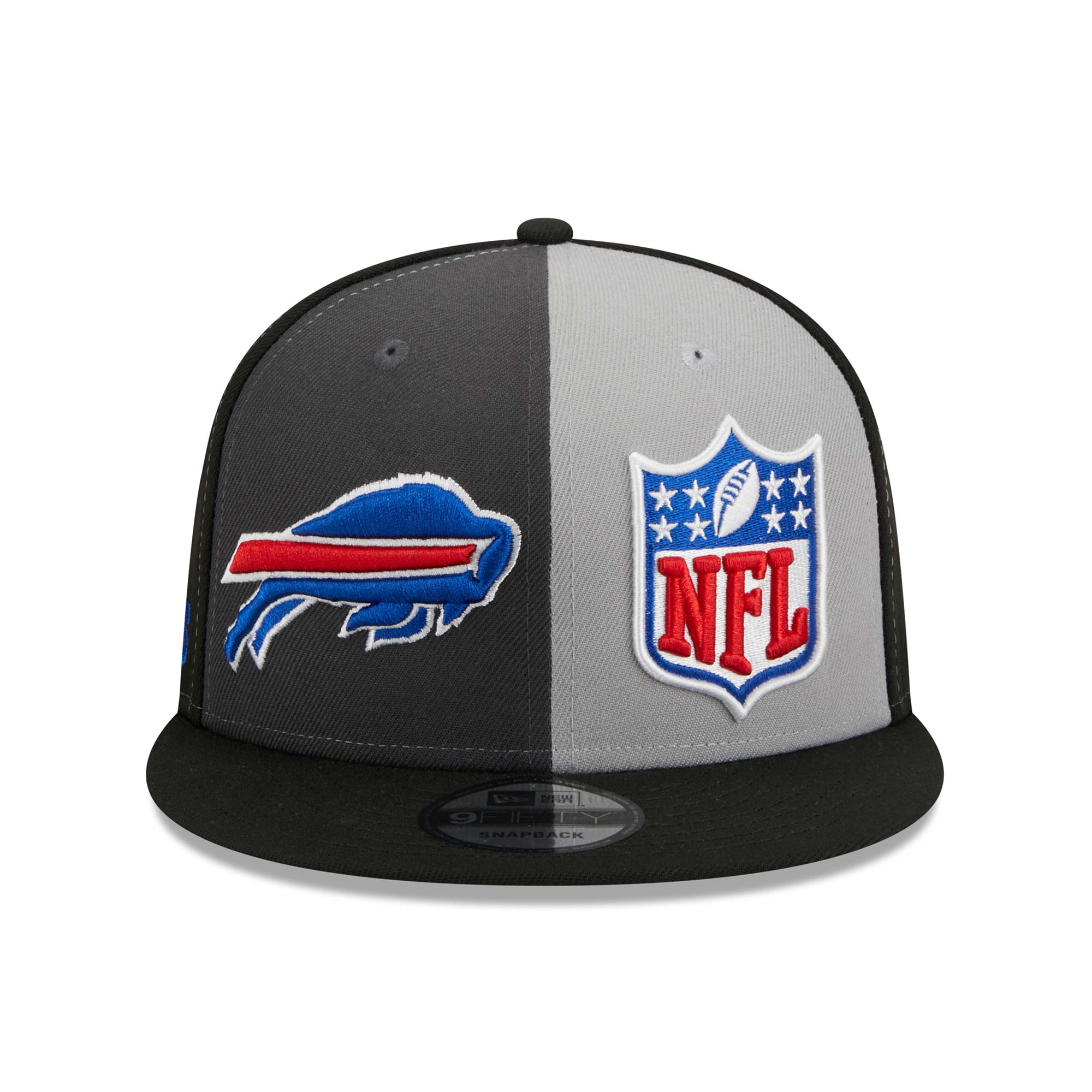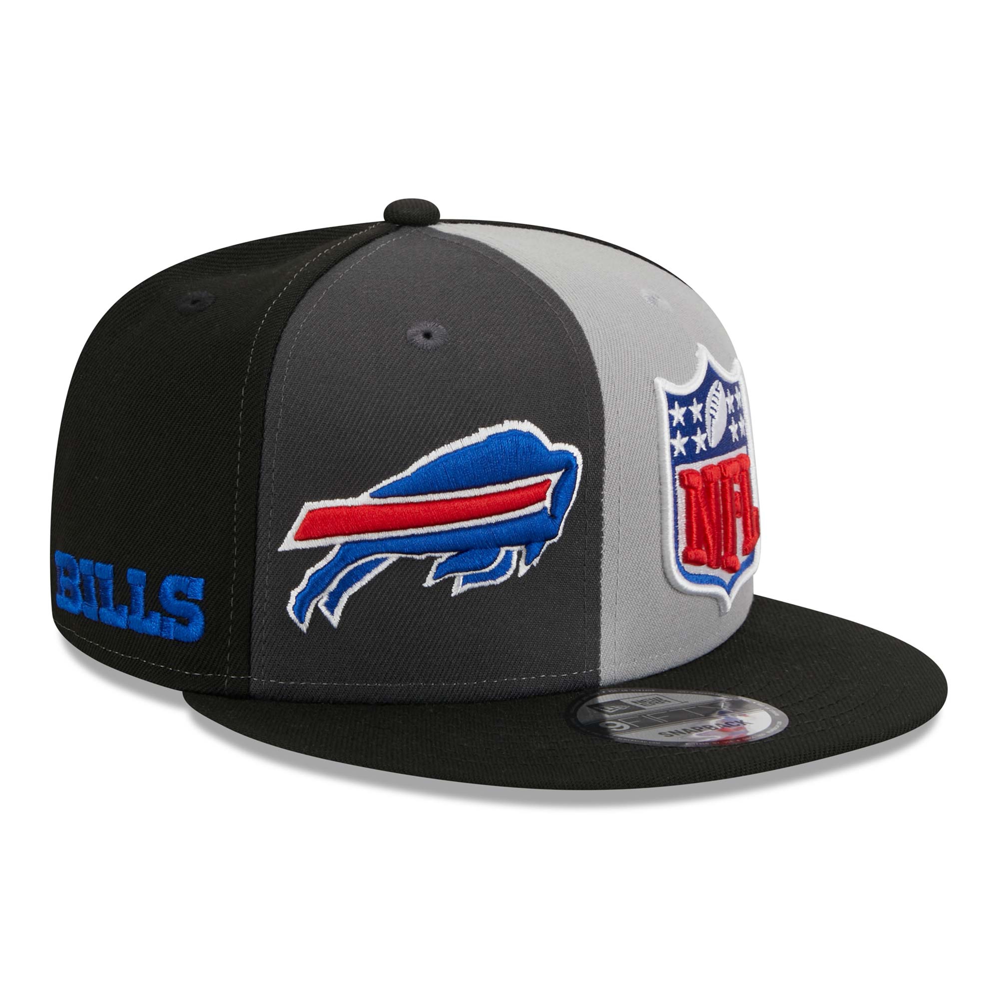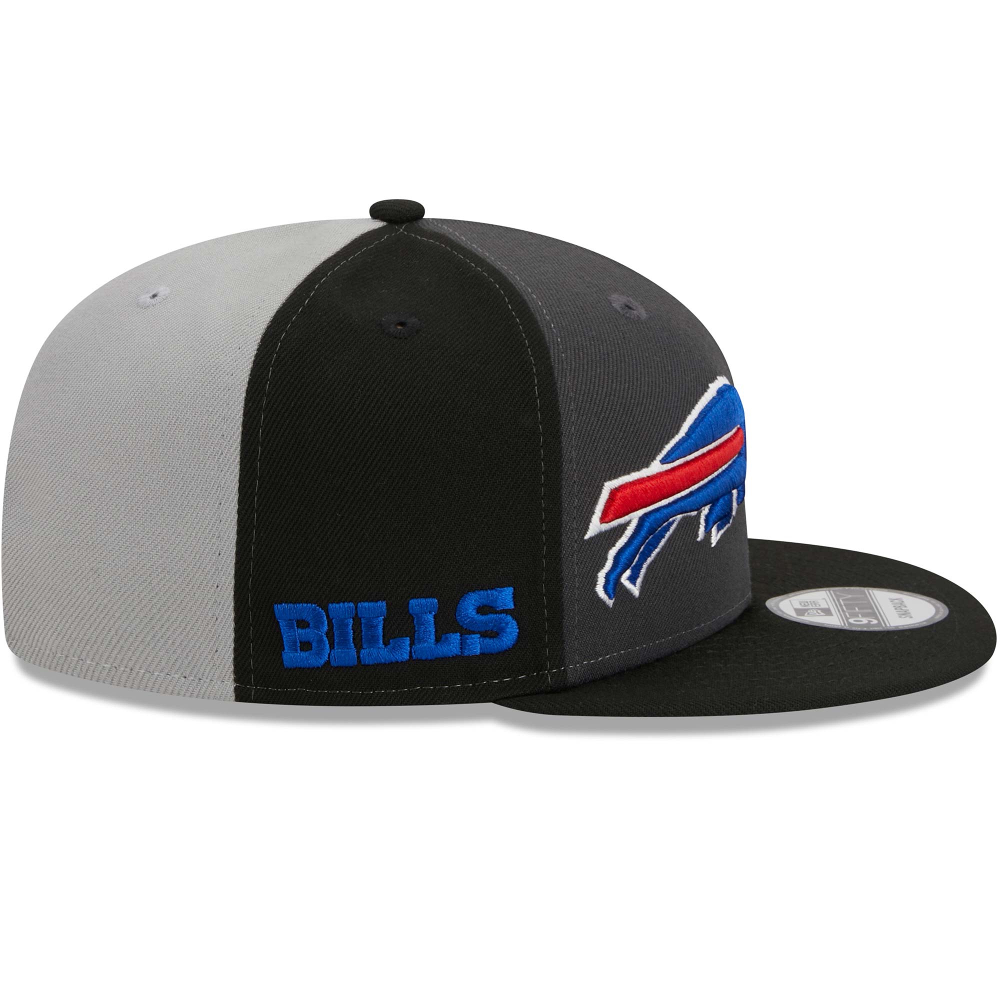 New Era Official Black and Gray Colorway 2023 NFL Sideline 9FIFTY Adjustable Snapback American Football Hat from your Buffalo Bills.