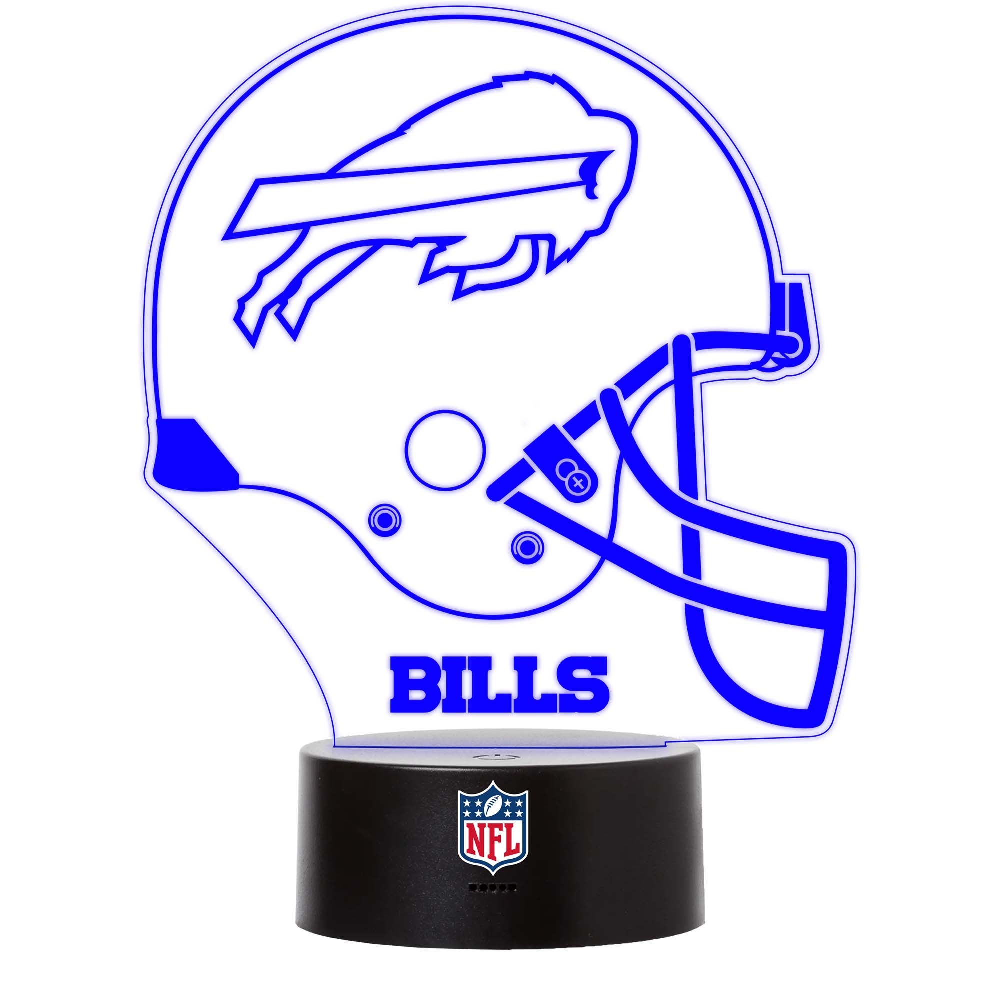 The LED team logo helmet sign lights up all NFL eyes! The laser-engraved acrylic sign comes in an authentic American football design including your Buffalo Bills team helmet. The sign can be assembled easily with the included NFL base. With the multi-color LED, you can set your favorite color or activate the automatic color change. But even when not illuminated, the NFL LED sign looks great and shouldn't be missing in any NFL fan cave. Easy use with USB or battery power.