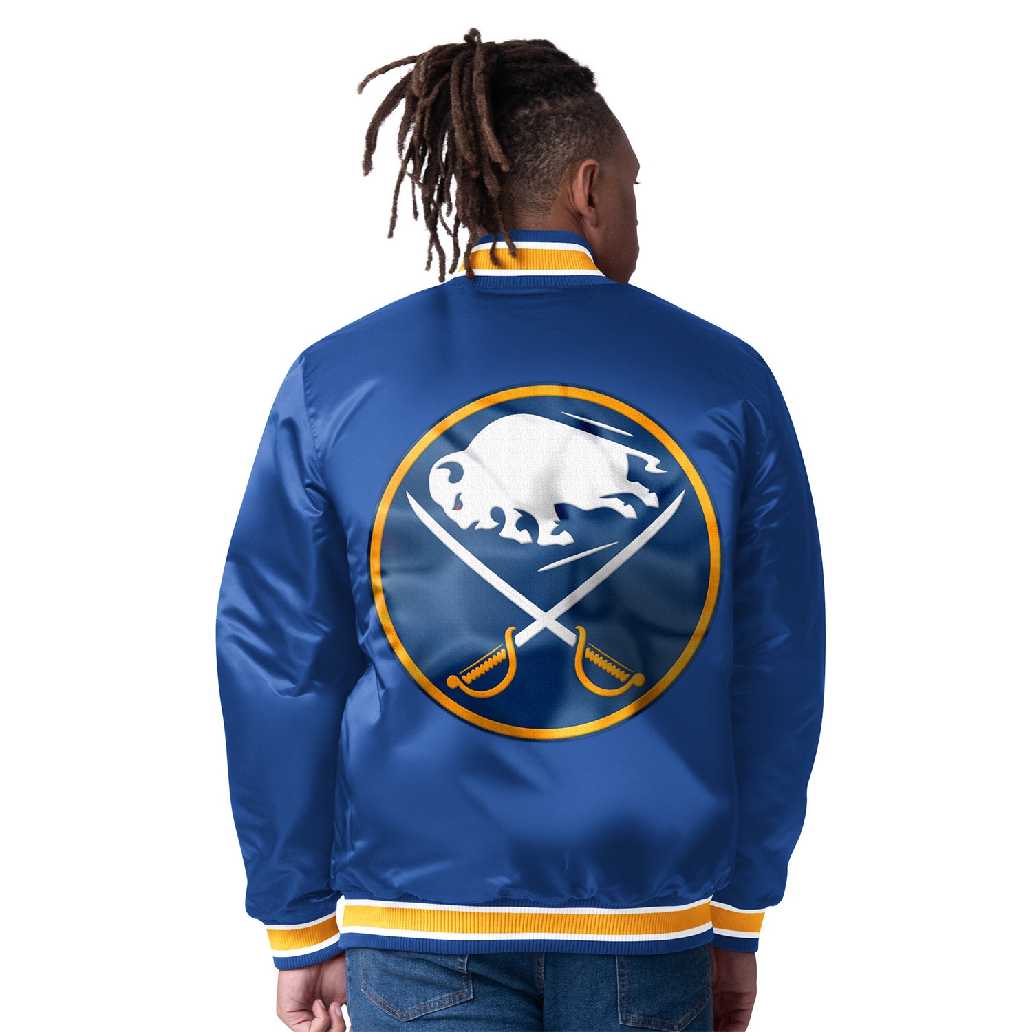 Show off your Buffalo Sabres pride with the Starter NHL Varsity Satin Jacket in the Reversible Closer Style. This premium jacket offers two looks in one-switch between a bold team design and a classic satin finish to match your style. With high-quality embroidery, iconic team colors, and a comfortable fit, this jacket is perfect for game day, casual wear, or your everyday wardrobe.