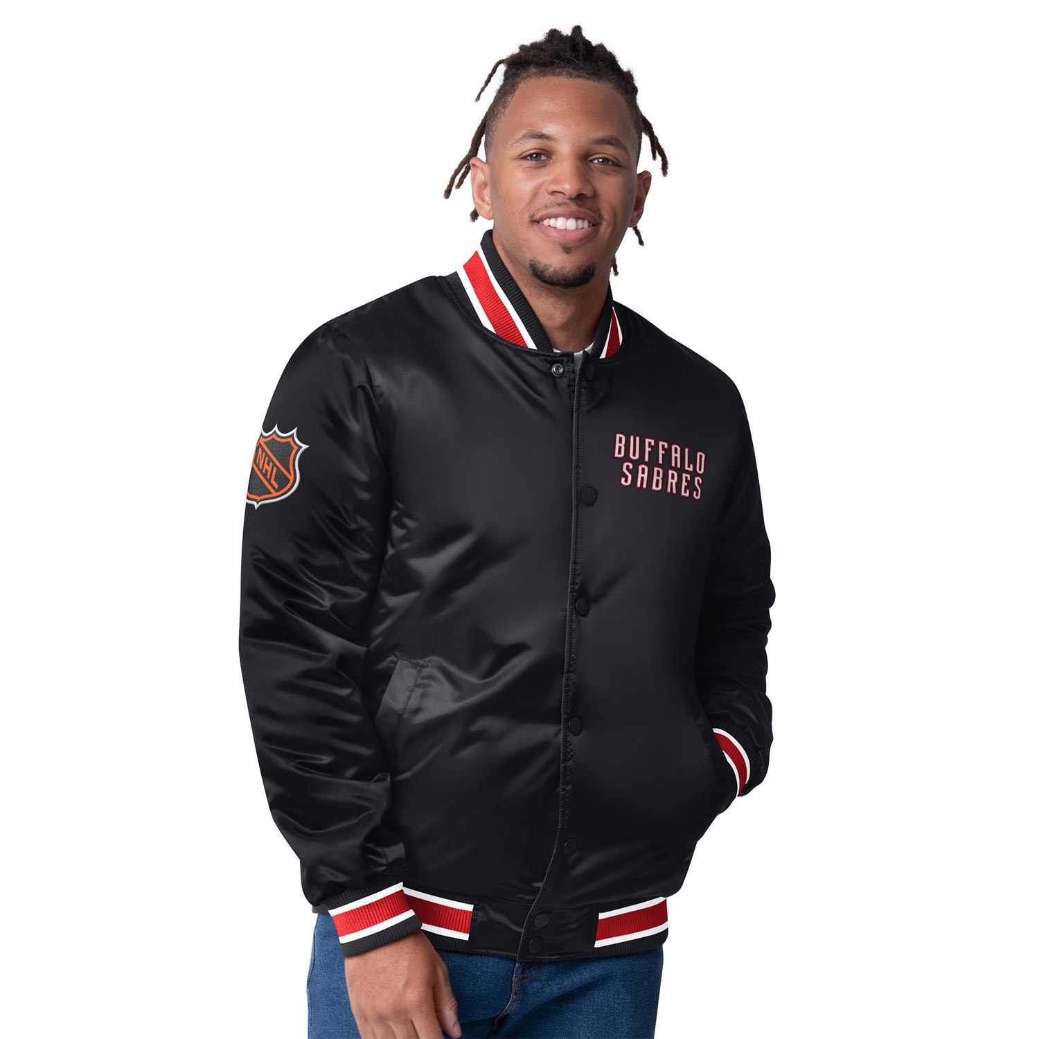 Elevate your Buffalo Sabres game-day outfit with this stylish and versatile Starter NHL Varsity Jacket-a must-have for any true fan!