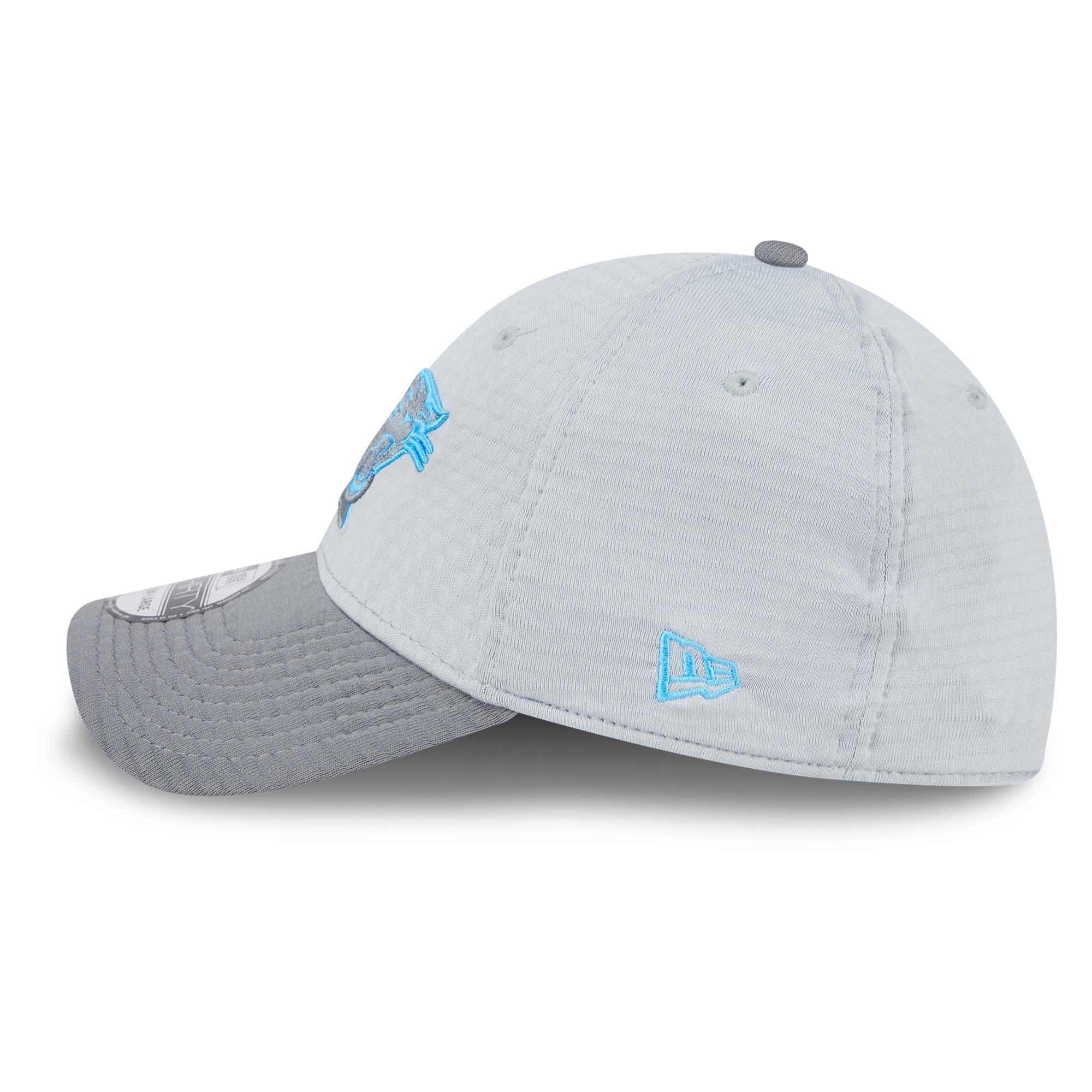The 2024 NFL Training Camp Caps by New Era impress with their two-tone team design and the gray colorway look. The high-quality, 3D-embroidered Carolina Panthers team logo adorns the front of the cap, while the embroidered NFL Shield logo with team stripes graces the back. Made from performance polyester, the cap's quilted design offers optimal properties for your workout, keeping your head cool and relaxed even in hot temperatures.