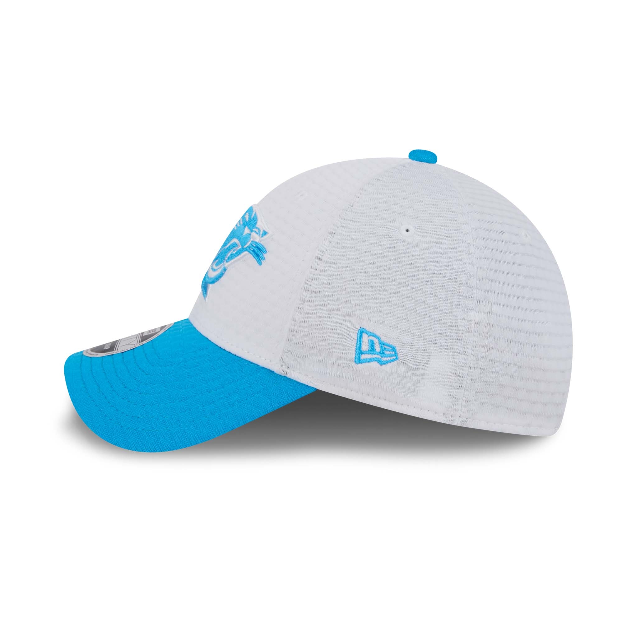 The 2024 NFL Training Camp Caps by New Era impress with their two-tone team design and white crown, perfect for summer workouts. The high-quality, 3D-embroidered Carolina Panthers team logo adorns the front of the cap, while the embroidered NFL Shield logo with team stripes graces the back. Made from performance polyester, the cap's quilted design offers optimal properties for your workout, keeping your head cool and relaxed even in hot temperatures.