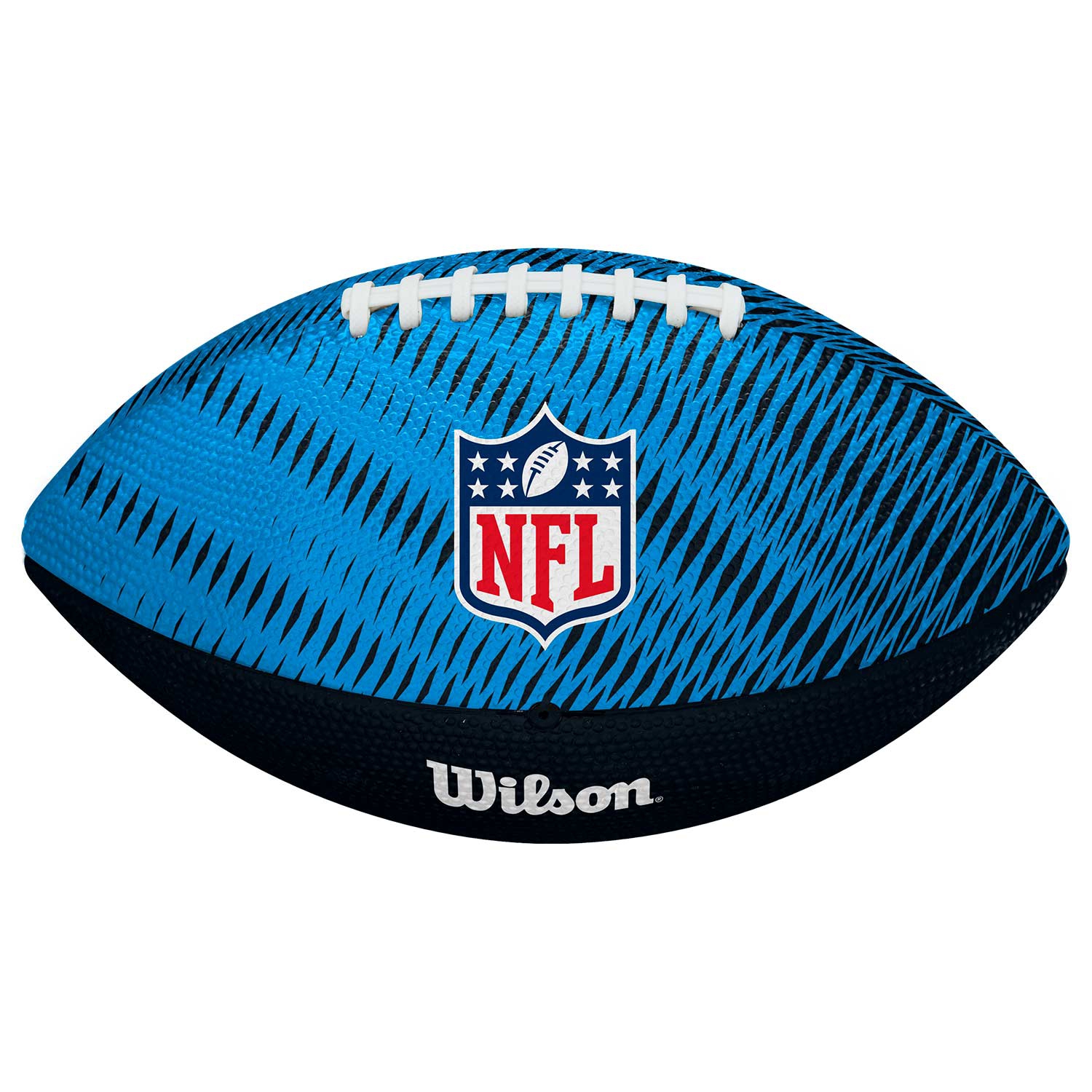 Wilson NFL Junior American Football featuring the official Carolina Panthers Team Tailgate Design.
