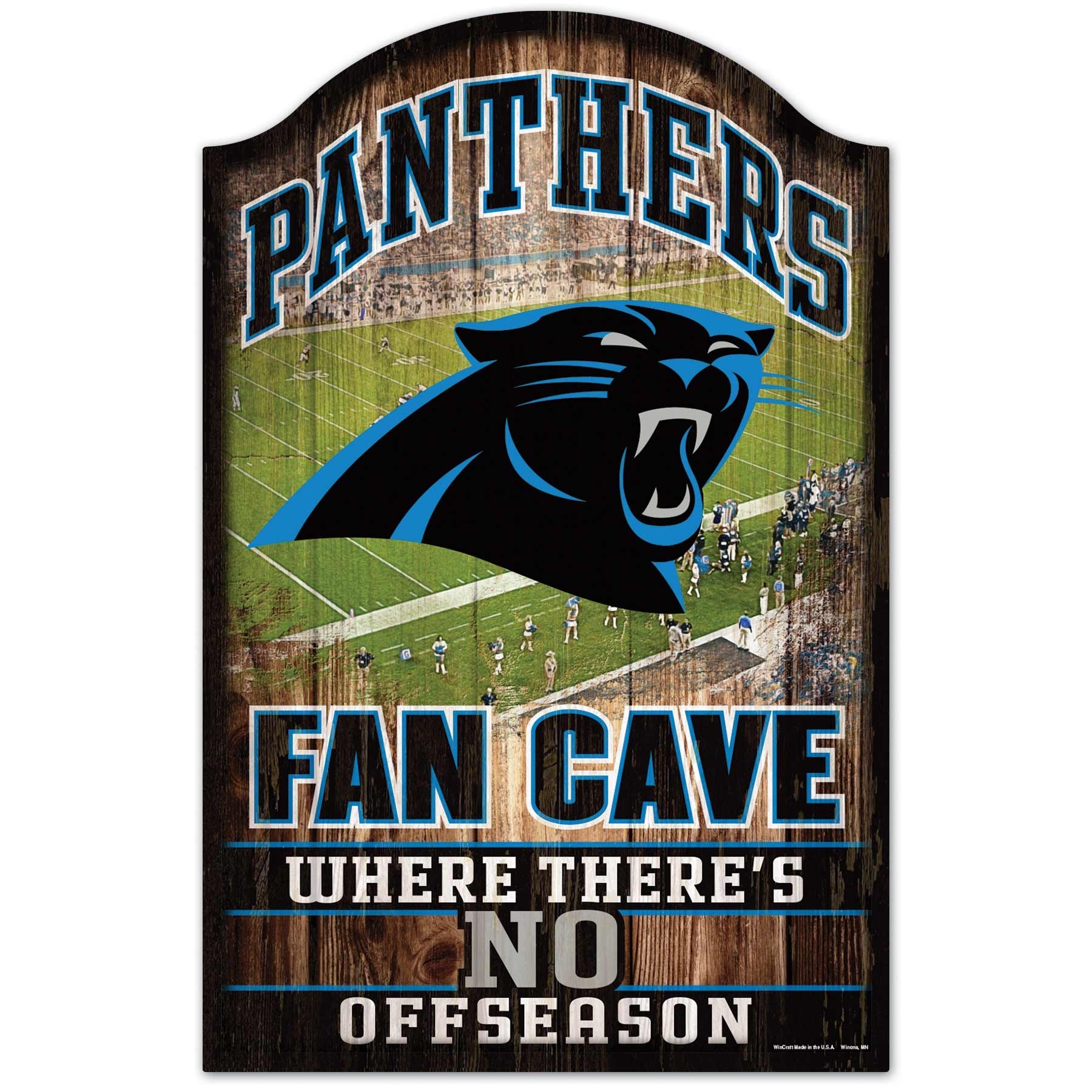 WinCraft NFL Football Fan Cave Wood Sign from your Carolina Panthers.