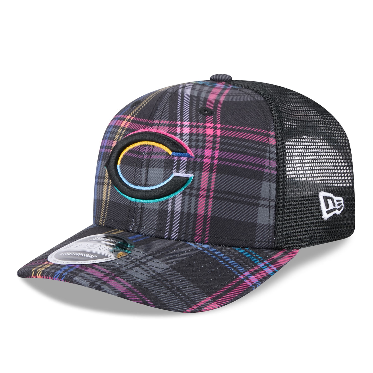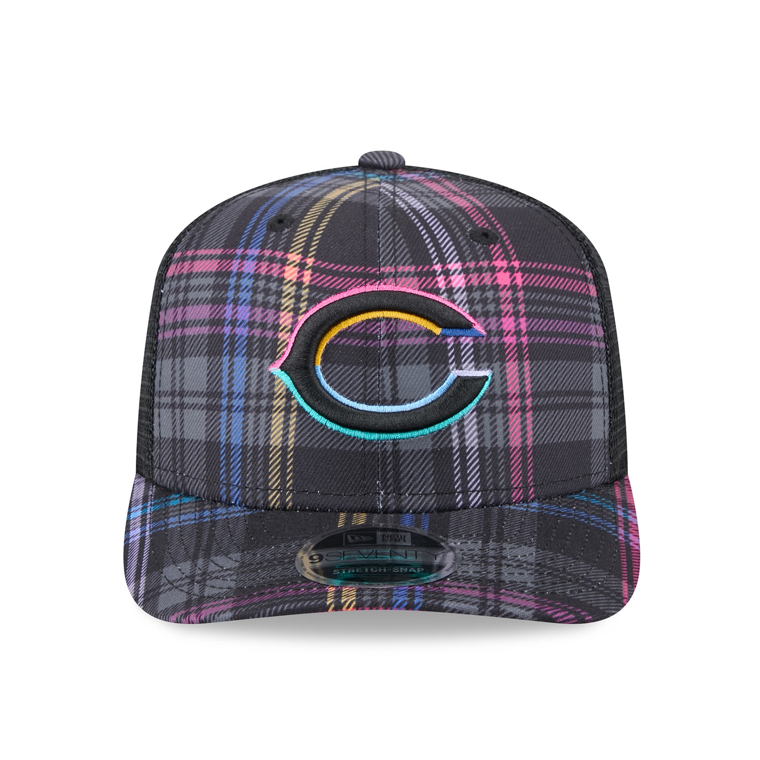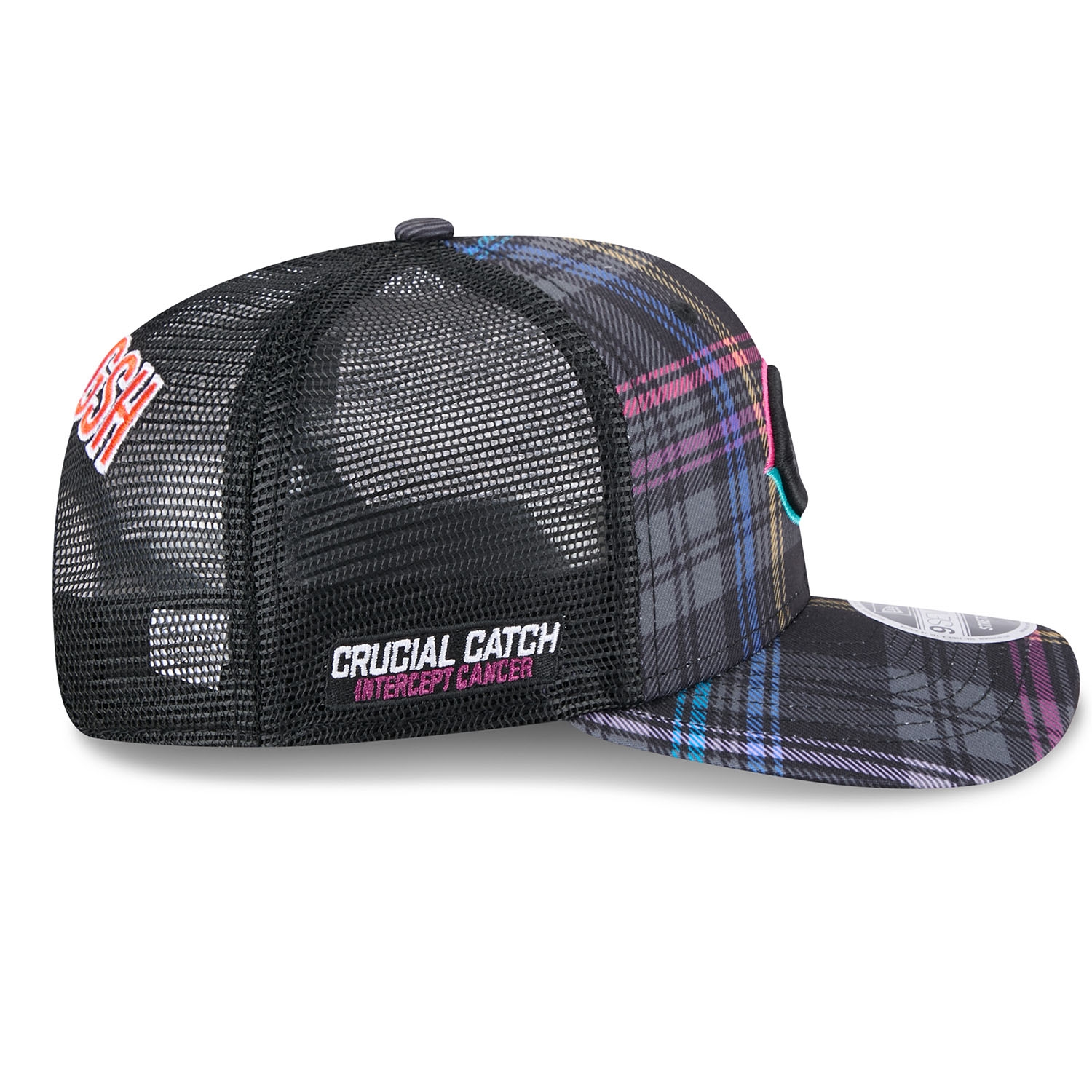 Support the global fight against cancer with the official New Era 2024 NFL Crucial Catch On-Field Cap. This adjustable fit NFL cap is worn on the sidelines during the 2024-25 Crucial Catch campaign in October. The front of the cap is embroidered with the brightly accented Chicago Bears team logo. The right side features the "CRUCIAL CATCH - INTERCEPT CANCER" patch, while the back is adorned with the embroidered NFL logo. The sublimated plaid design in the signature Crucial Catch colors gives it a unique look.