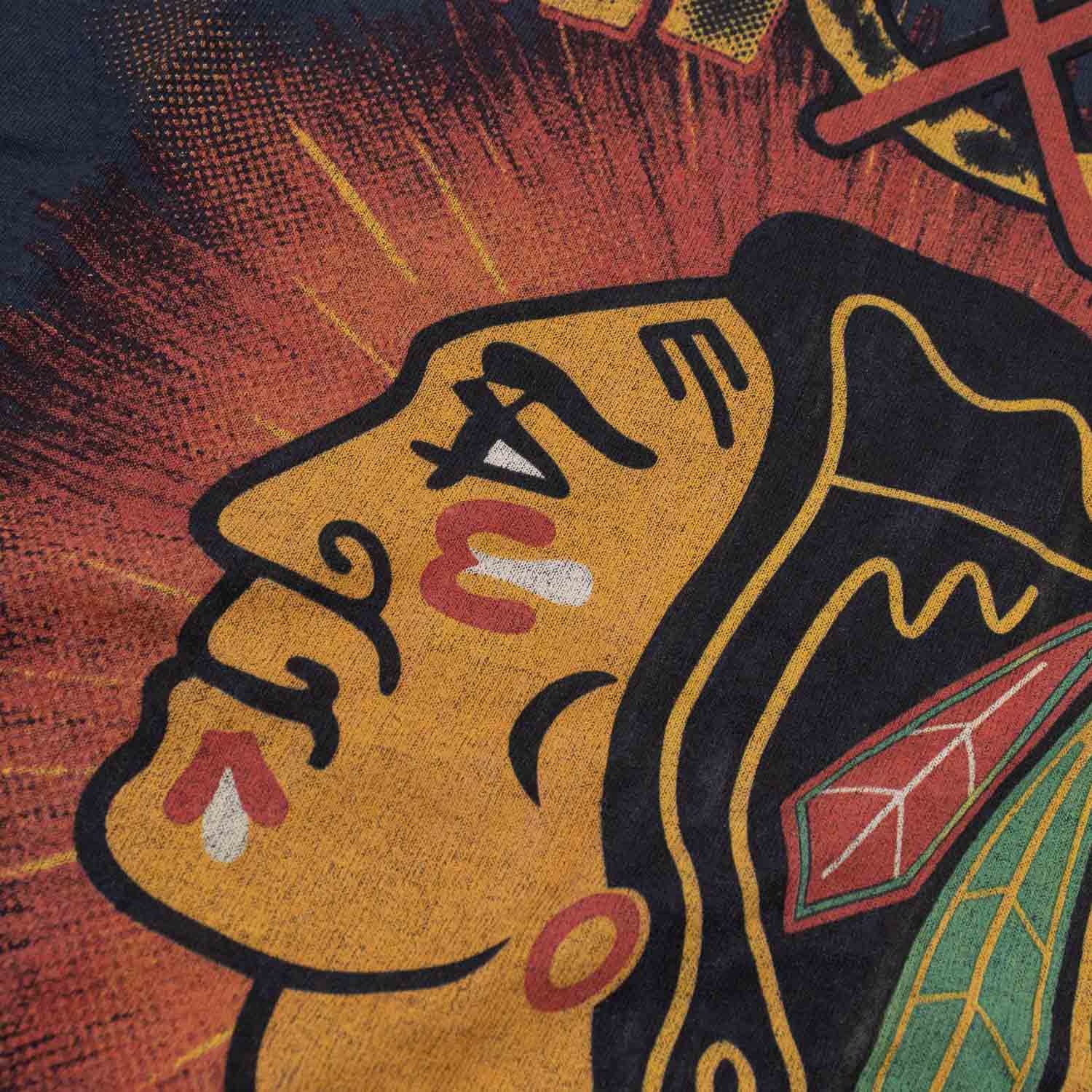 - Large front print featuring the "Chicago 5 x Stanley Cup Champions" lettering and a powerful skyline graphic.