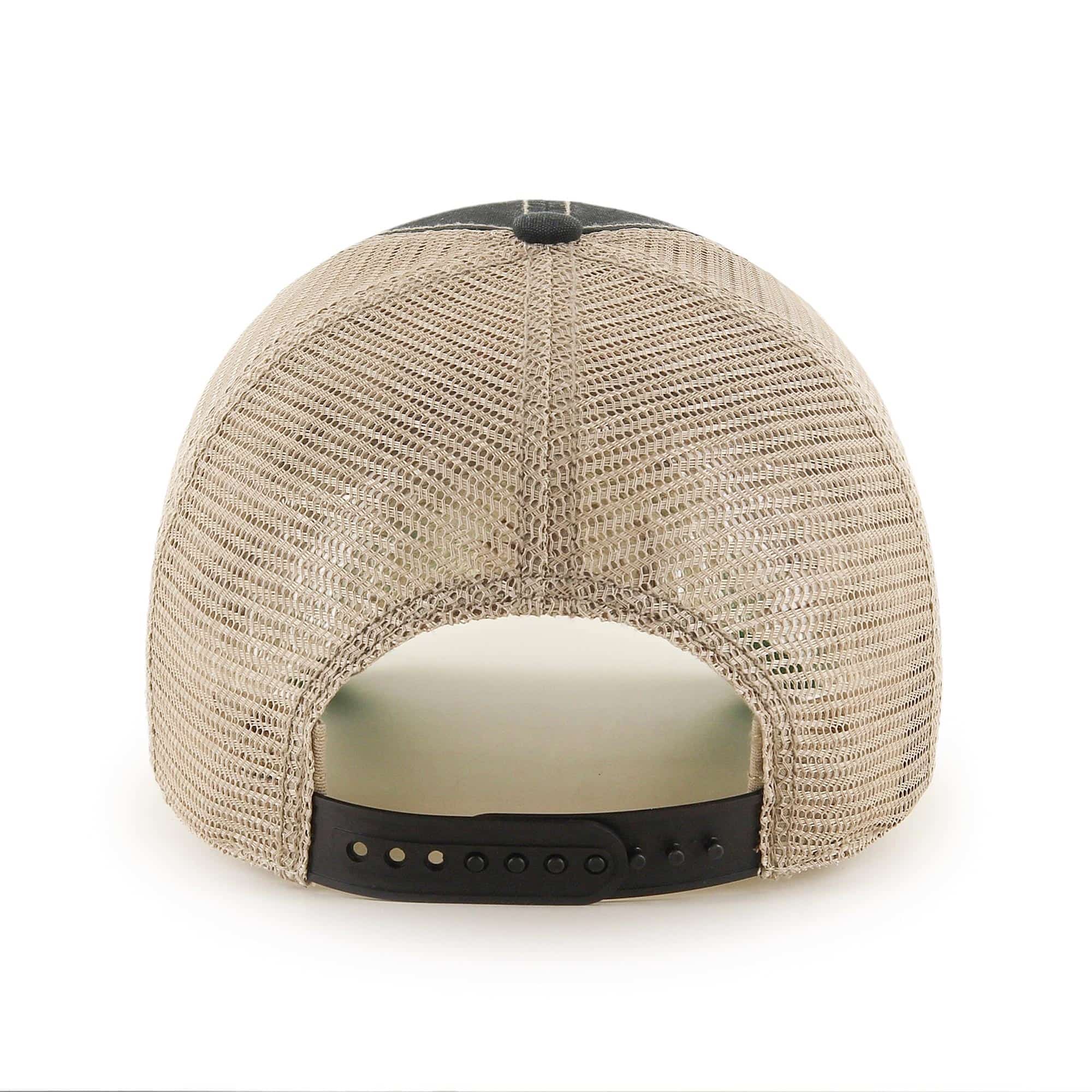 The Vintage Trucker Clean Up is a relaxed and curved adjustable snapback with team patch on front. This hat is made from garment washed cotton twill and soft mesh. With '47 Brand logo on left side, mesh-back and snapback closure.