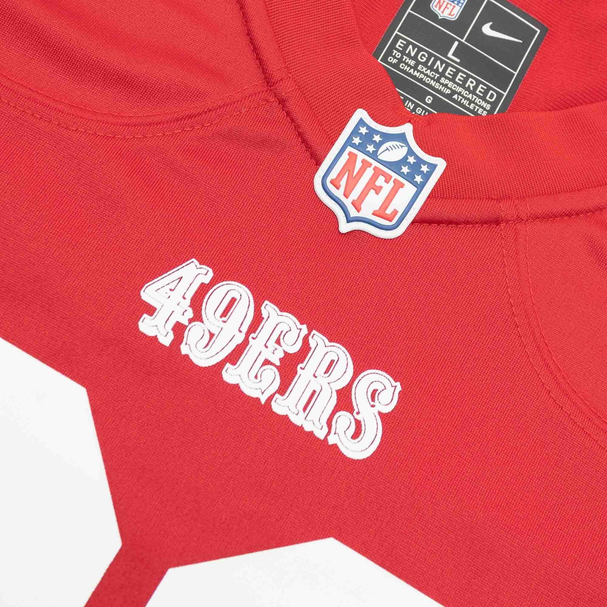 Rep your favorite team and player anytime in the NFL Game Jersey, inspired by what they're wearing on the field and designed for total comfort. The jersey features screen-printed CMC San Francisco 49ers graphics letting everyone know who you cheer for: Go Niners!