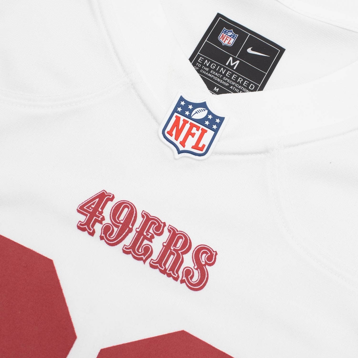 Celebrate one of the NFL's most dynamic running backs with the official San Francisco 49ers Game jersey by Nike—in classic white! Whether it's game day or everyday wear, this jersey puts your passion for McCaffrey and the 49ers on full display.