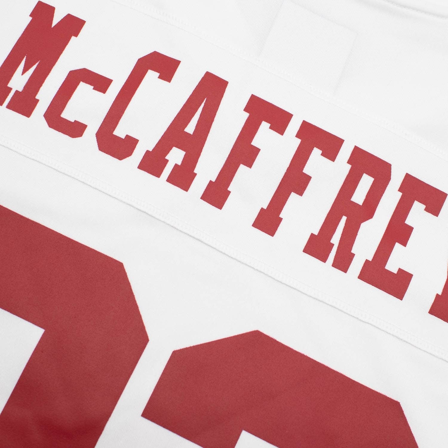 Nike Men's NFL White Game American Football Jersey from San Francisco 49ers Running Back Christian McCaffrey.