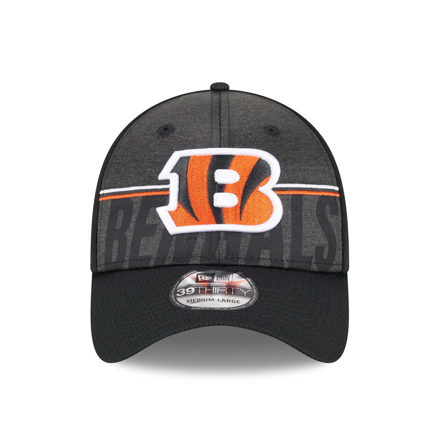 New Era Official 2023 NFL Training Camp Collection Stretch-Fit 39THIRTY American Football Hat from your Cincinnati Bengals.