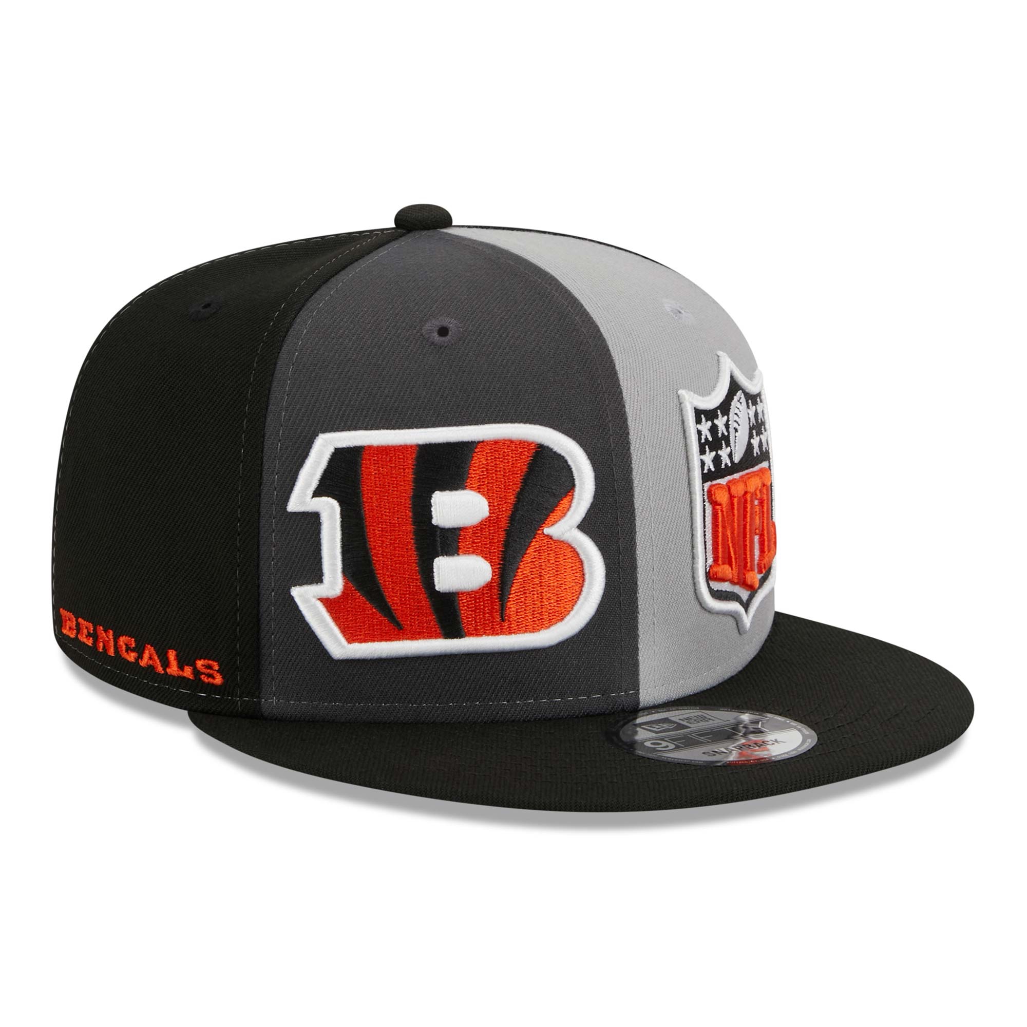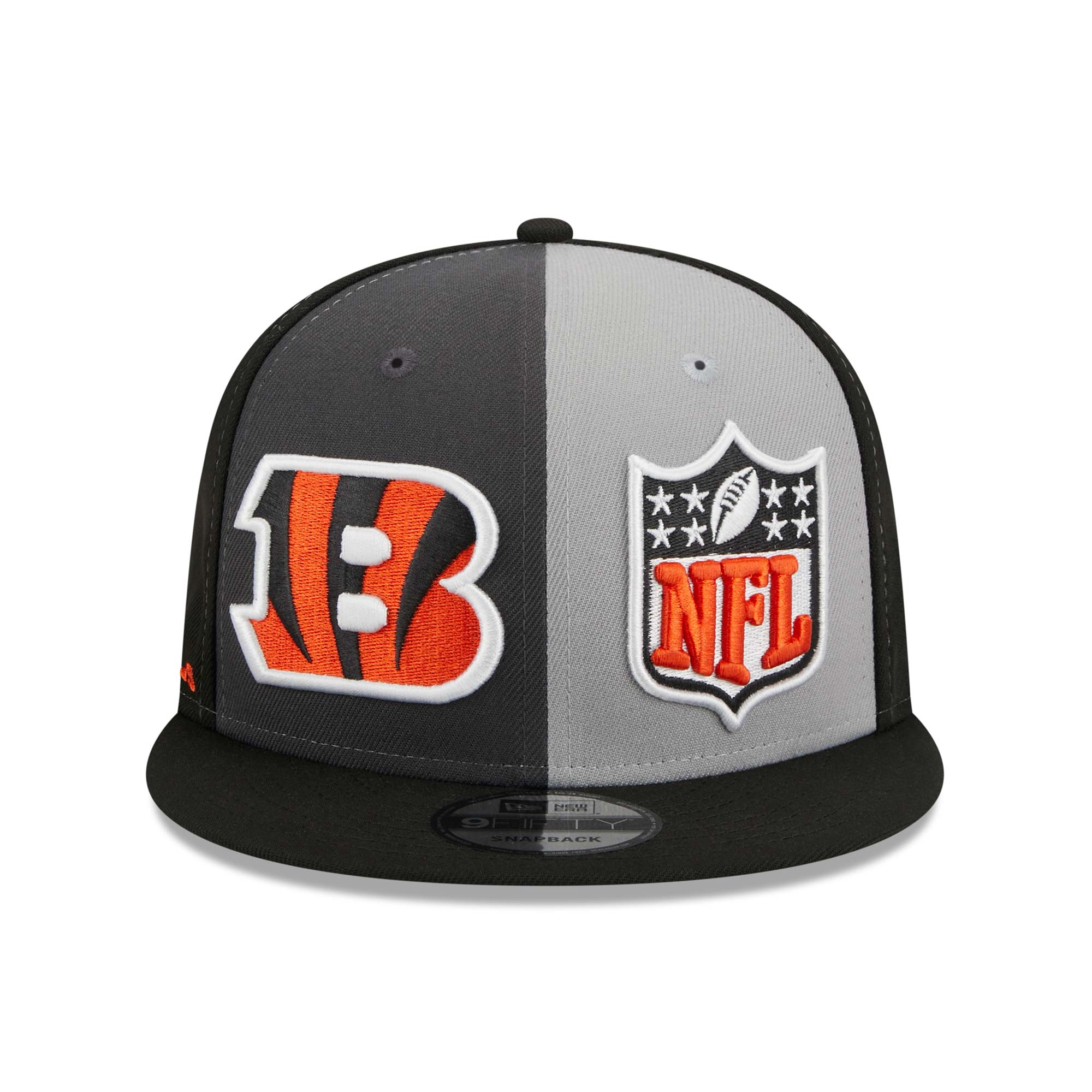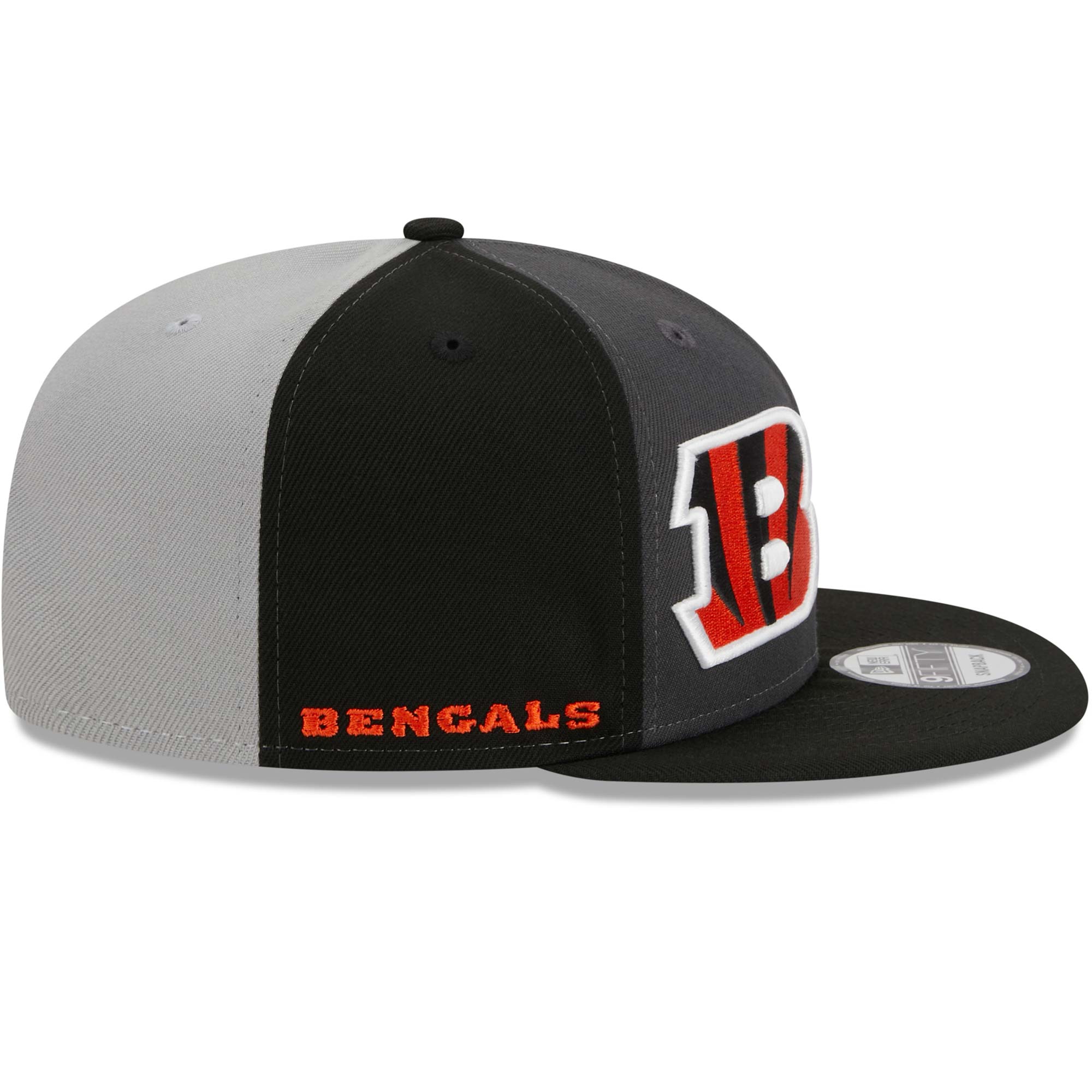 New Era Official Black and Gray Colorway 2023 NFL Sideline 9FIFTY Adjustable Snapback American Football Hat from your Cincinnati Bengals.