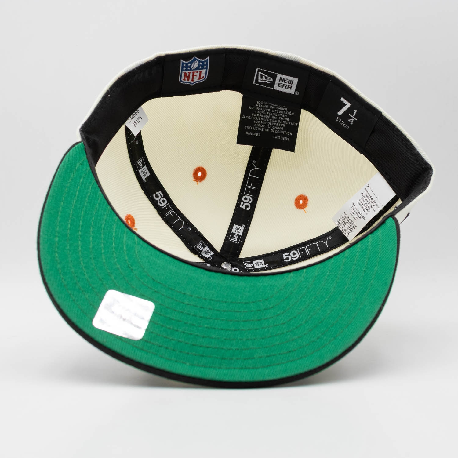 Classic 59FIFTY fit with a high structured crown and flat visor. New Era logo embroidered on left side. With stitched black eyelets for breathability. Interior includes branded taping.