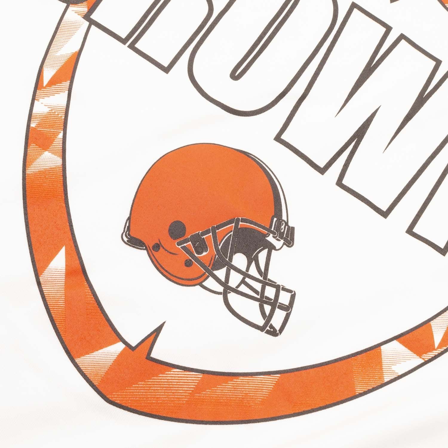 This iconic NFL tee by Nike features Cleveland Browns team logo and wording with a football silhouette on front (screen-printed). Nike Swoosh logo decoration on left sleeve. The Nike Dri-FIT technology wicks away moisture and helps you to stay dry and comfortable even during the hardest workouts. Rib crew neck with interior taping for a comfortable fit.