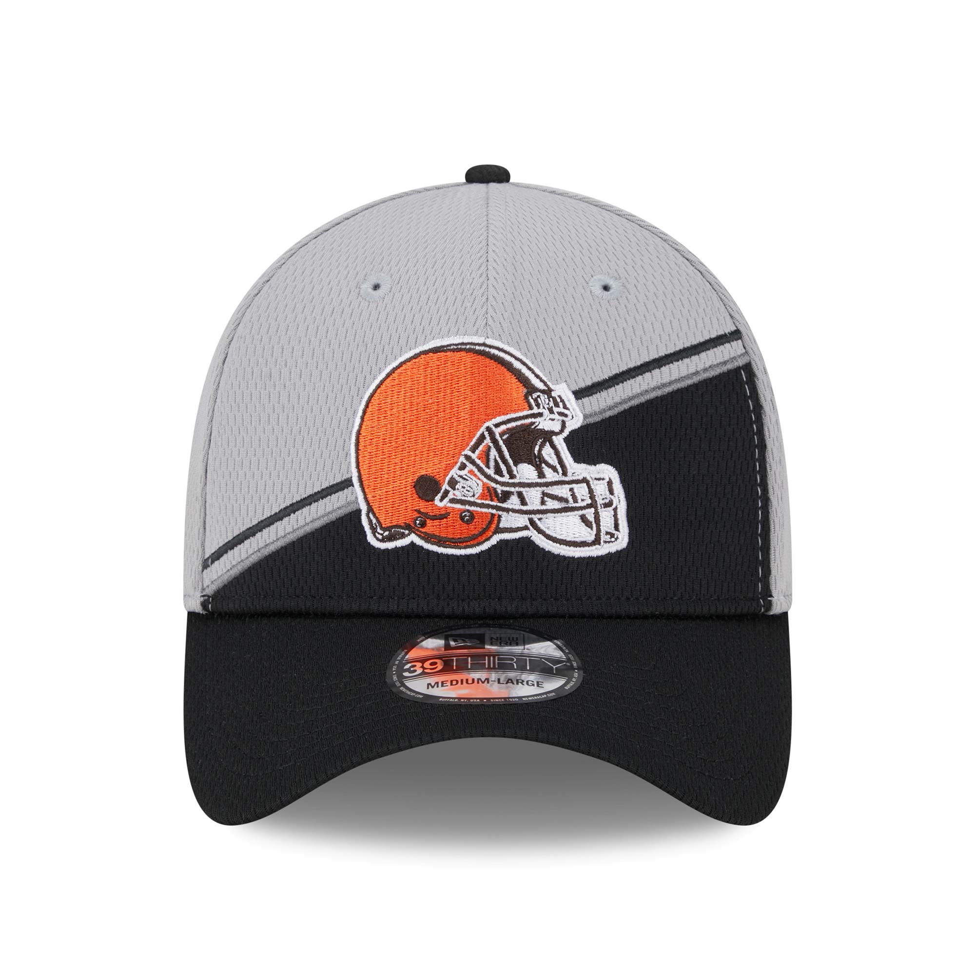 New Era Black and Gray Colorway 2023 On Field NFL Sideline Stretch-Fit 39THIRTY American Football Hat from your Cleveland Browns.