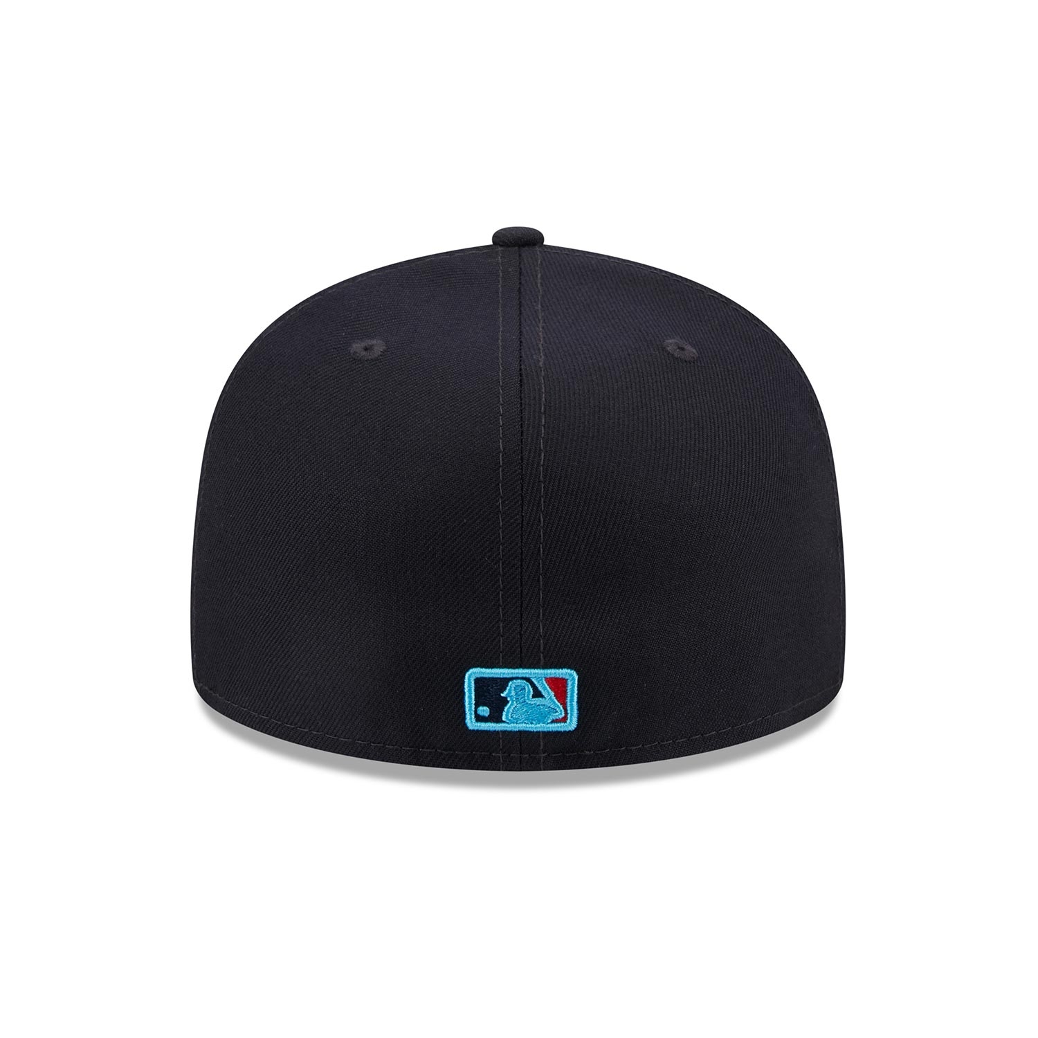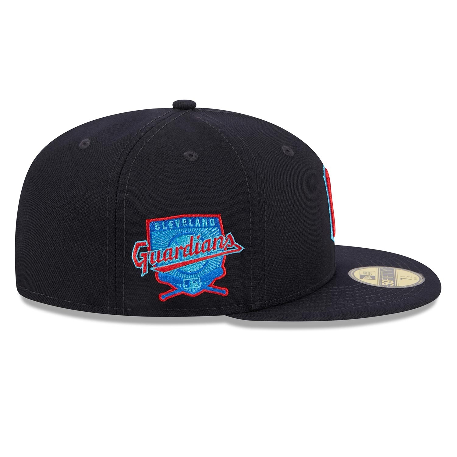 The 2023 MLB Father's Day 59FIFTY fitted hat by New Era features embroidered blue Cleveland Guardians team logo and MLB Batterman logo on closed back. The Cap features an additional embroidered Father's Day team logo patch on the right side. The colour of the undervisor is light blue and brings us the perfect Father's Day look.