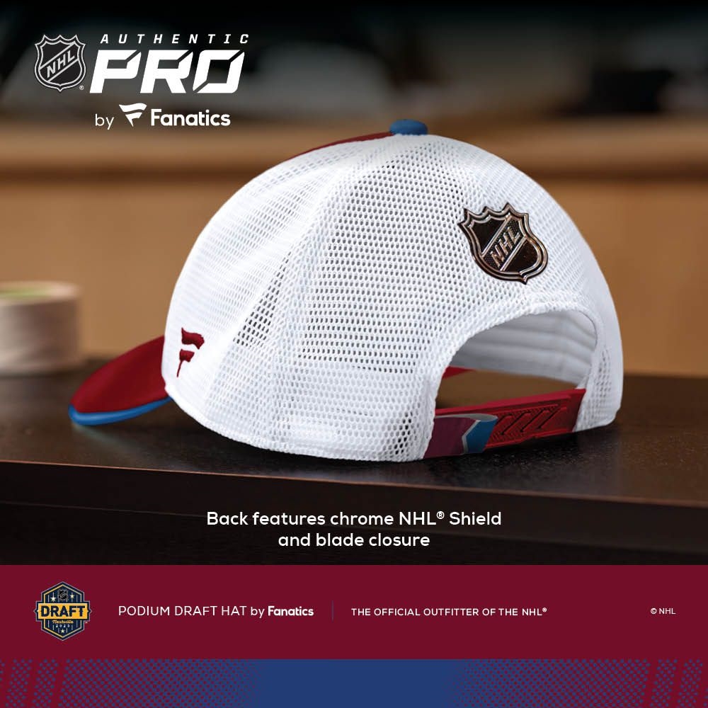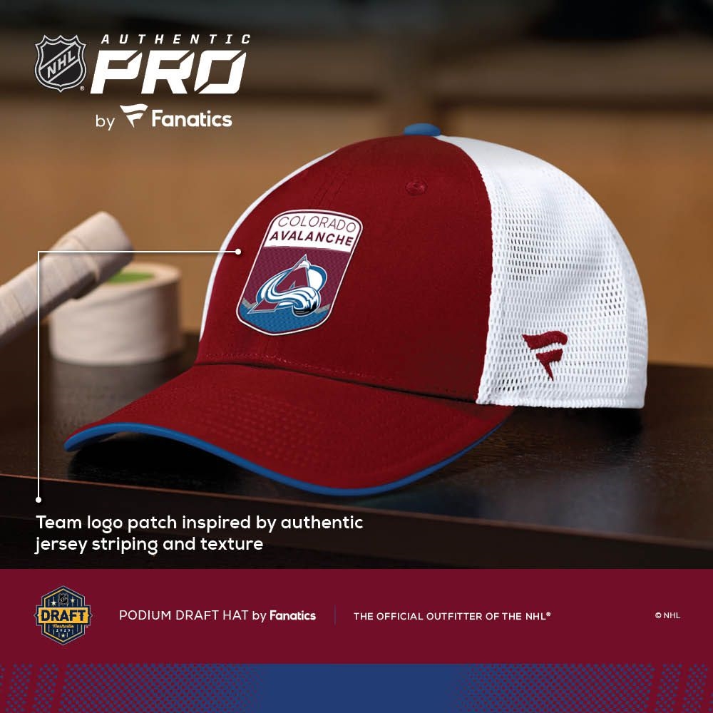 Fanatics Ice Hockey Adjustable Trucker Hat from your Colorado Avalanche. Official Authentic Pro On-Stage 2023 NHL Draft Edition.