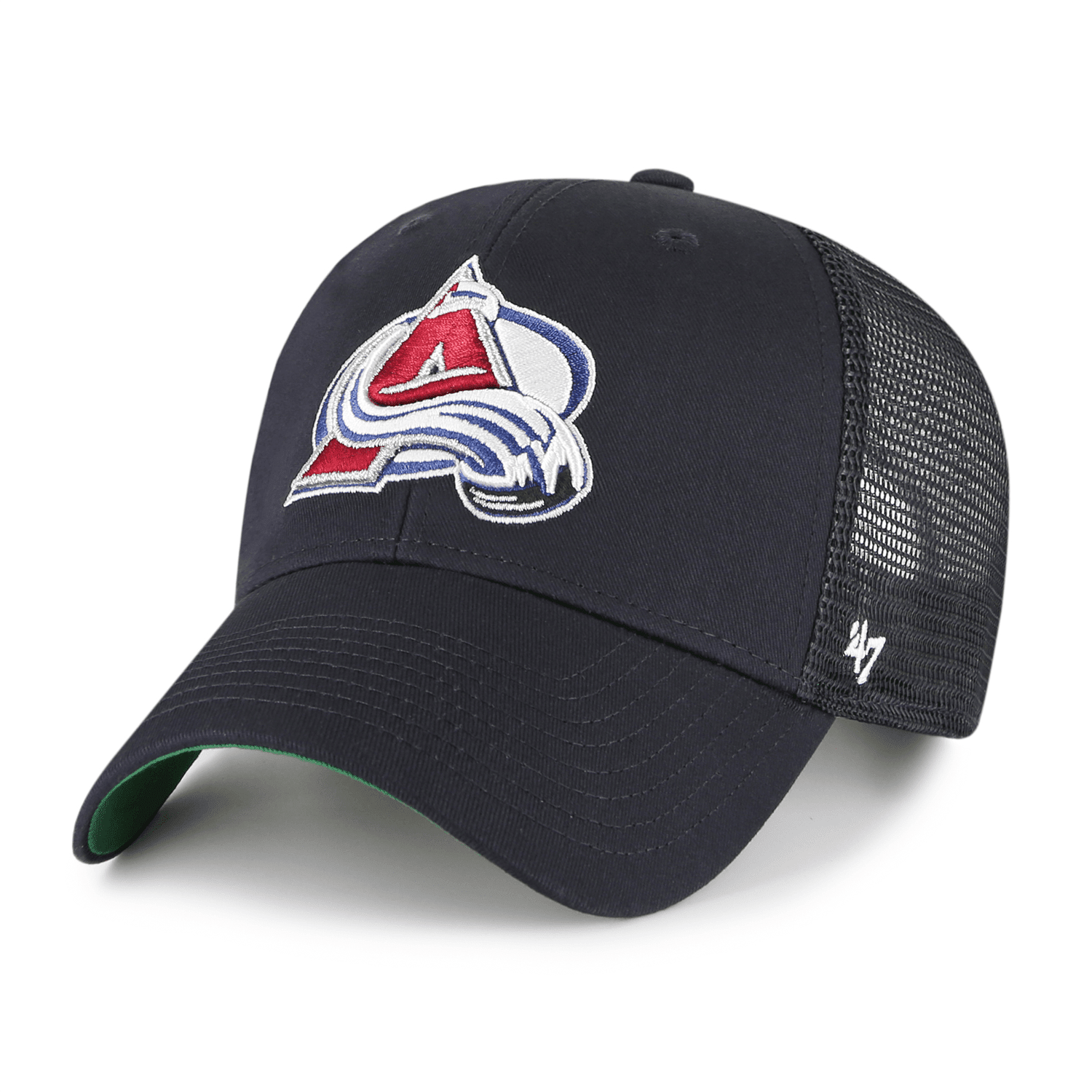 Featuring Colorado Avalanche team logo on front. '47 Brand logo on left side. Snapback closure, green undervisor and trucker mesh on sides and back.