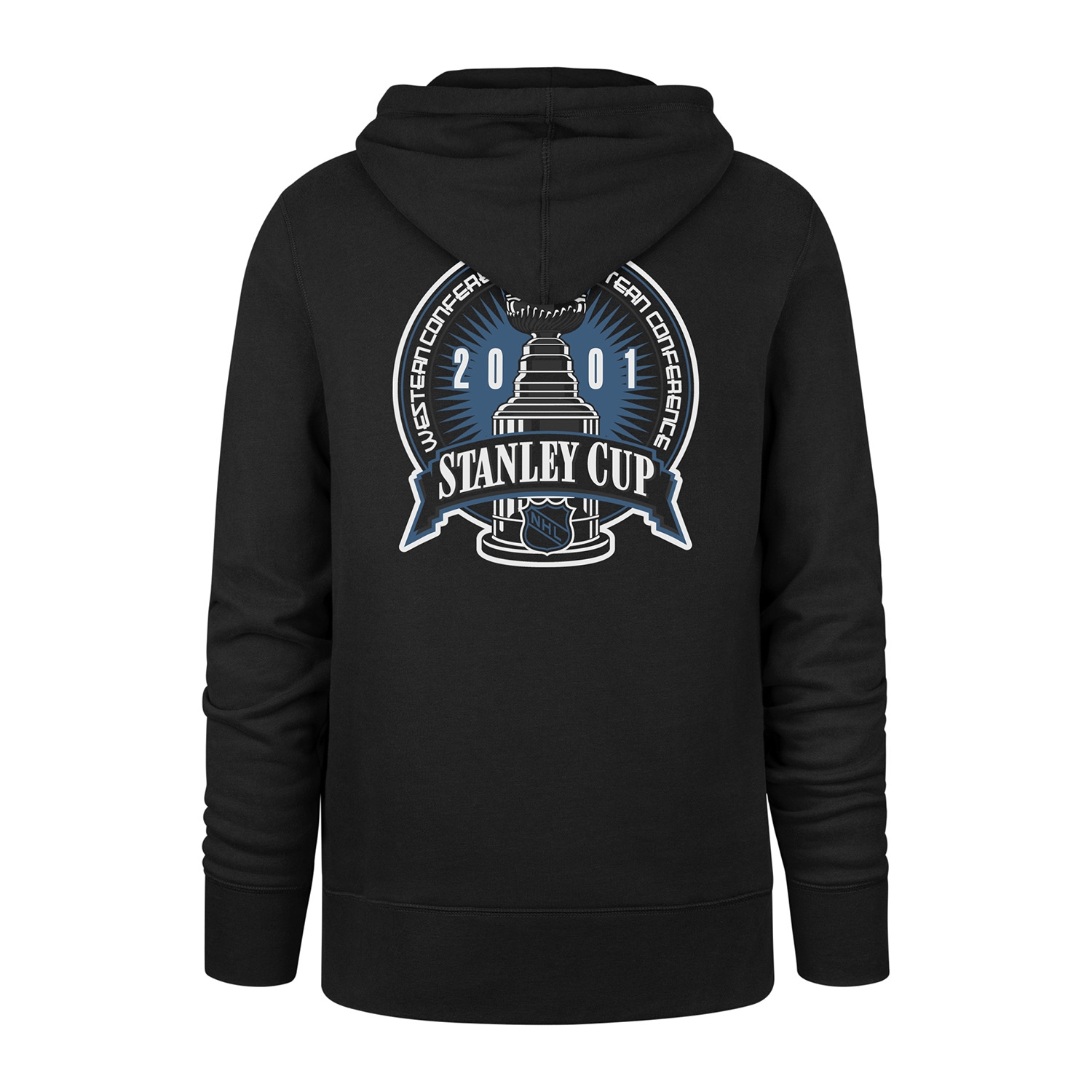 '47 NHL Men's Burnside Baseball Hooded Sweatshirt from your Colorado Avalanche with Tonal Team Logo Print on Front and Stanley Cup Logo on Back.