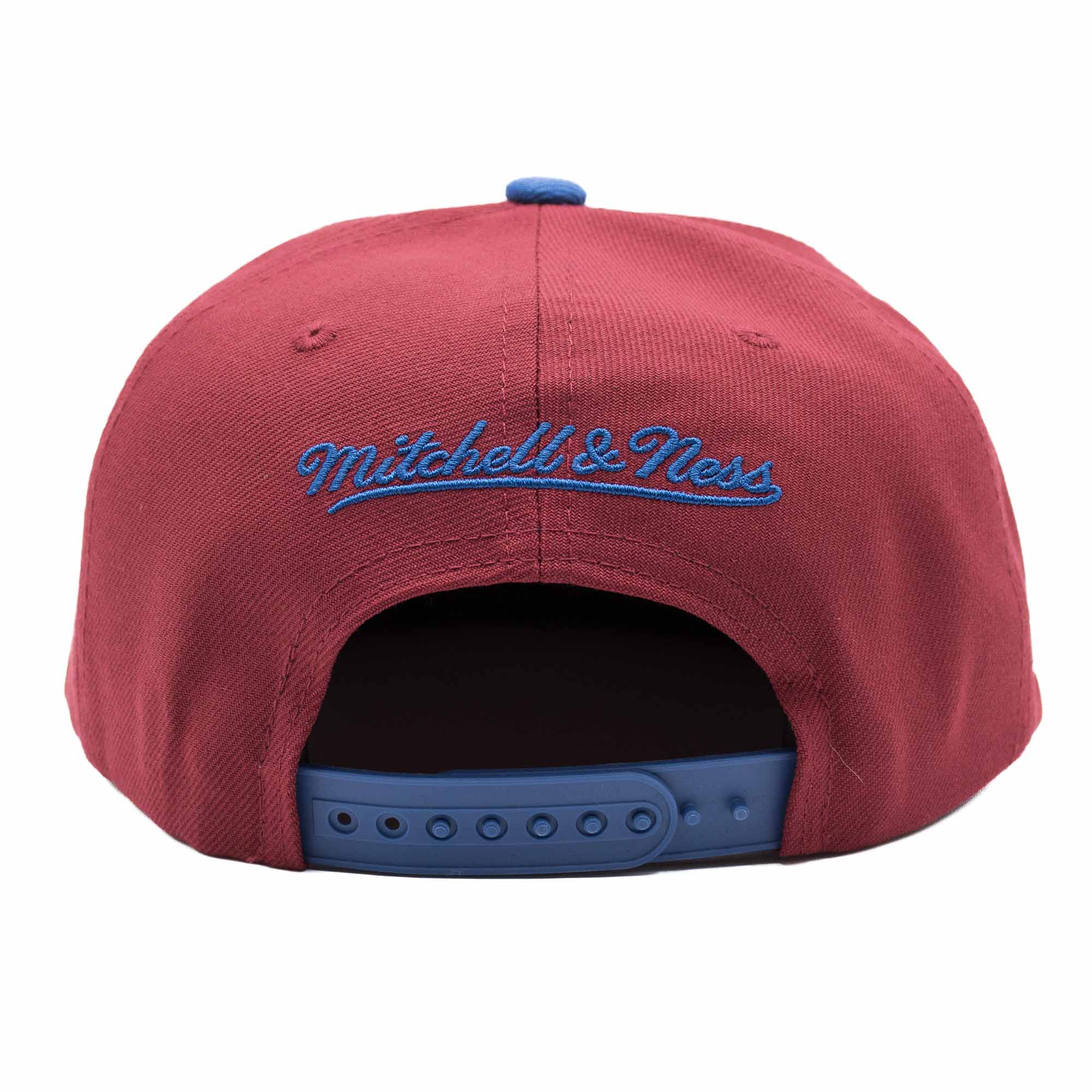 Mitchell & Ness Original Fit Snapback profile with a high structured crown and small, flat visor. Stitched eyelets for breathability. Interior includes branded taping as well as a moisture absorbing sweatband. A snapback closure for an adjustable fit.