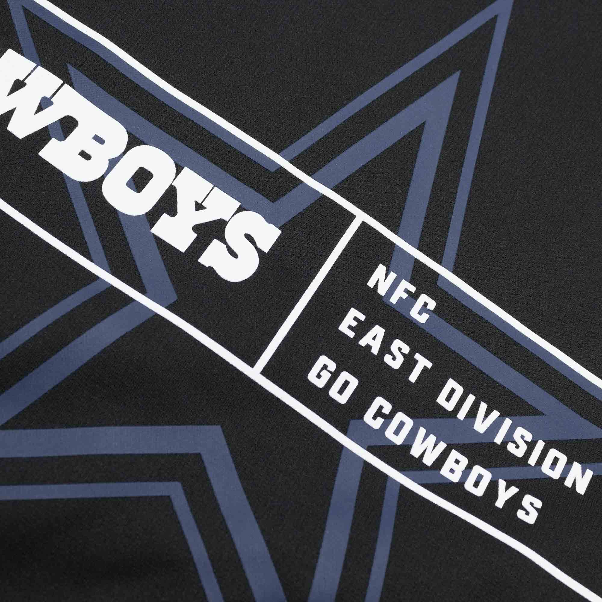 Decorated with screen printed Dallas Cowboys team logo and division block on front this two color hoodie is designed for maximum team support and performance use. Nike Swoosh logo printed on the left sleeve.