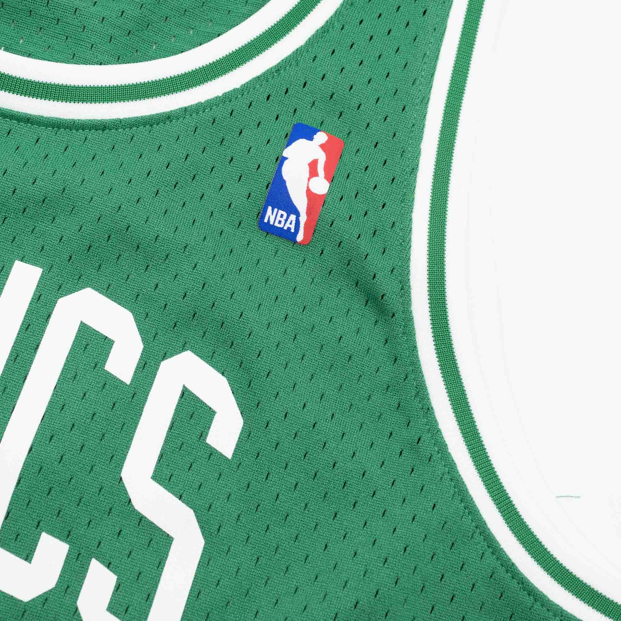 Rep your favorite team and player anytime in the NBA Swingman Hardwood Classics Jersey, replicating what the Boston Celtics have worn on the court during that era. With heat seal screen printed twill logo, name and number applications. The body is made from 100% polyester mesh. Woven Hardwood Classics-Mitchell & Ness jocktag at front lower left.