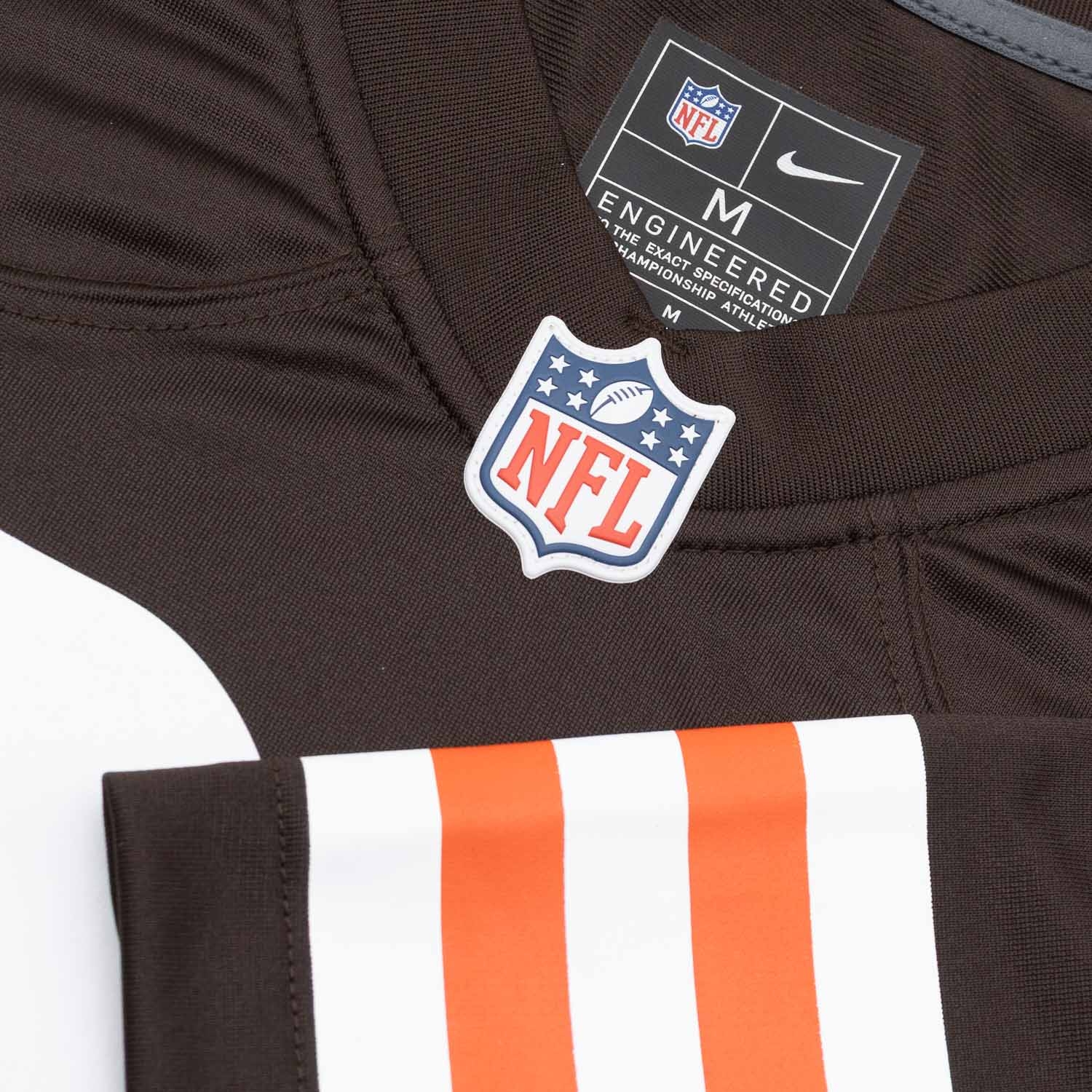 - Classic orange and white sleeve stripes for that timeless Browns look
