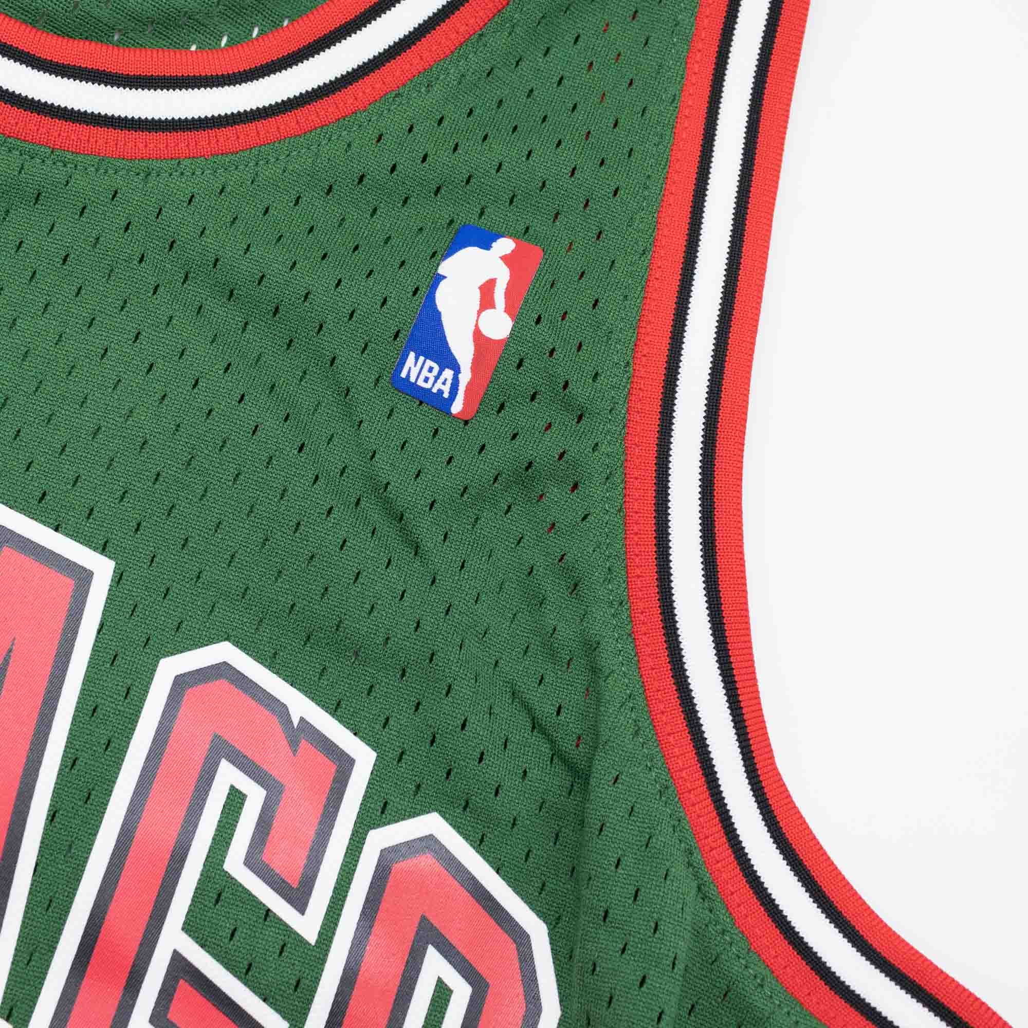 Rep your favorite team and player anytime in the NBA 2.0 Swingman Hardwood Classics Jersey, replicating what the Chicago Bulls have worn on the court during that era. With heat seal screen printed twill logo, name and number applications. The body is made from 100% polyester mesh. Woven Hardwood Classics-Mitchell & Ness jocktag at front lower left.