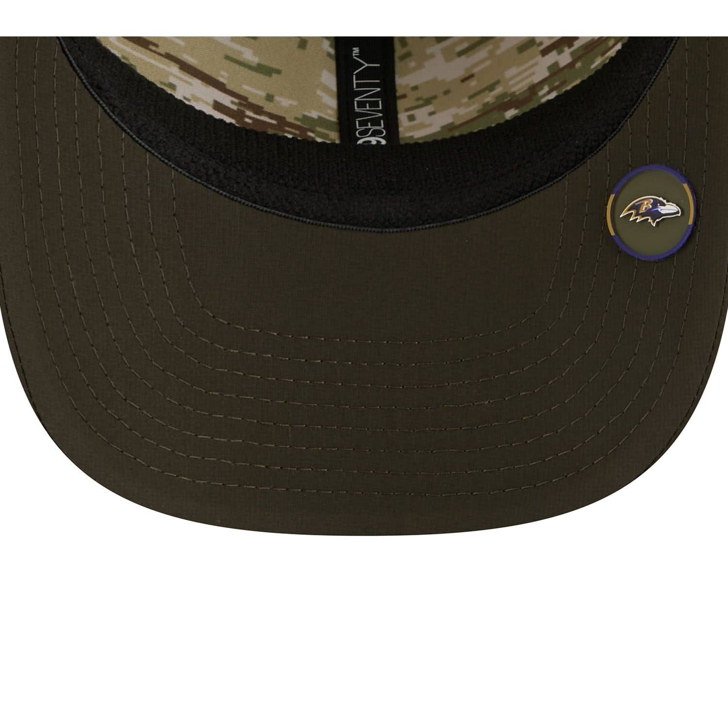 New Era Official On-Field 2025 NFL Salute to Service Collection 9SEVENTY Trucker Hat from your Baltimore Ravens.