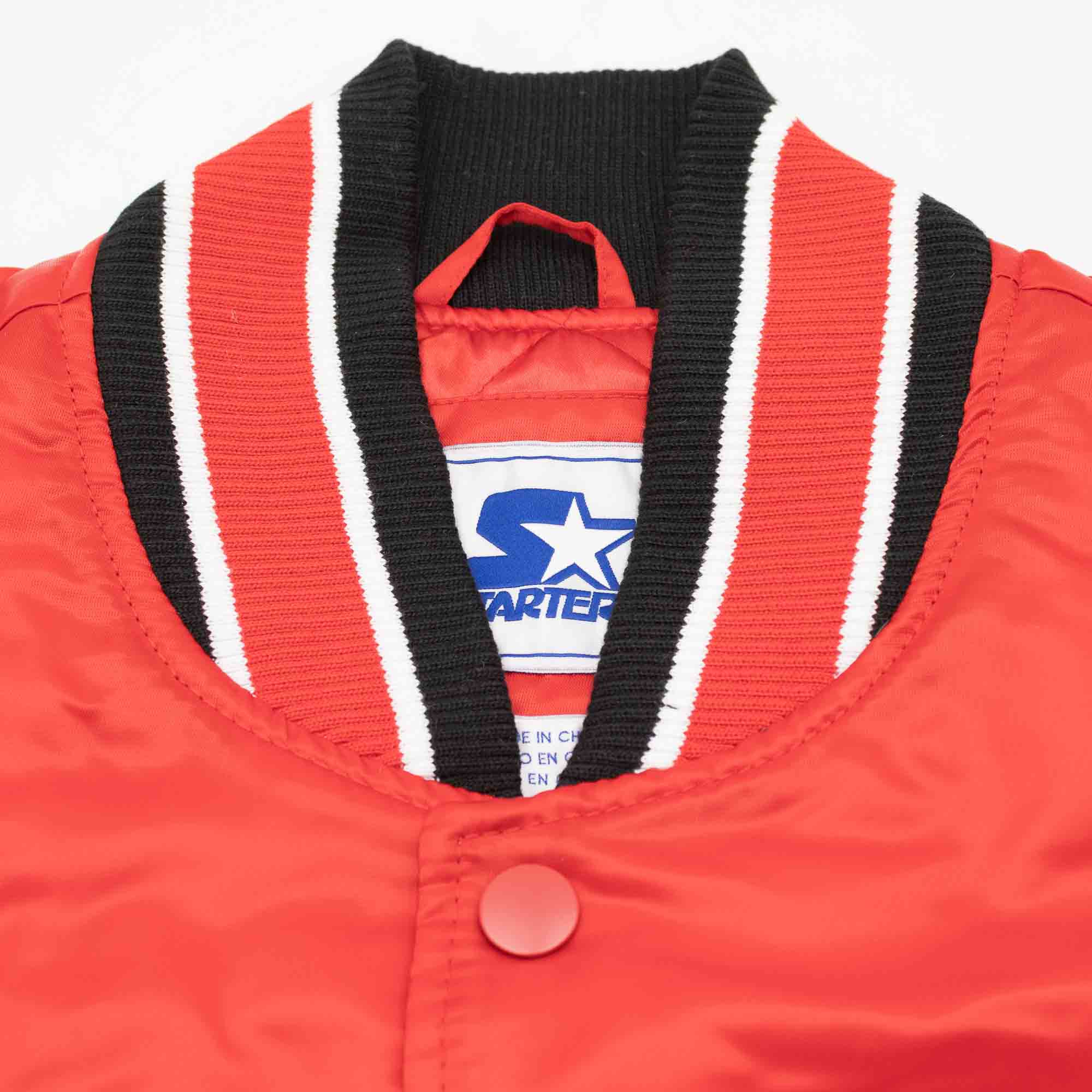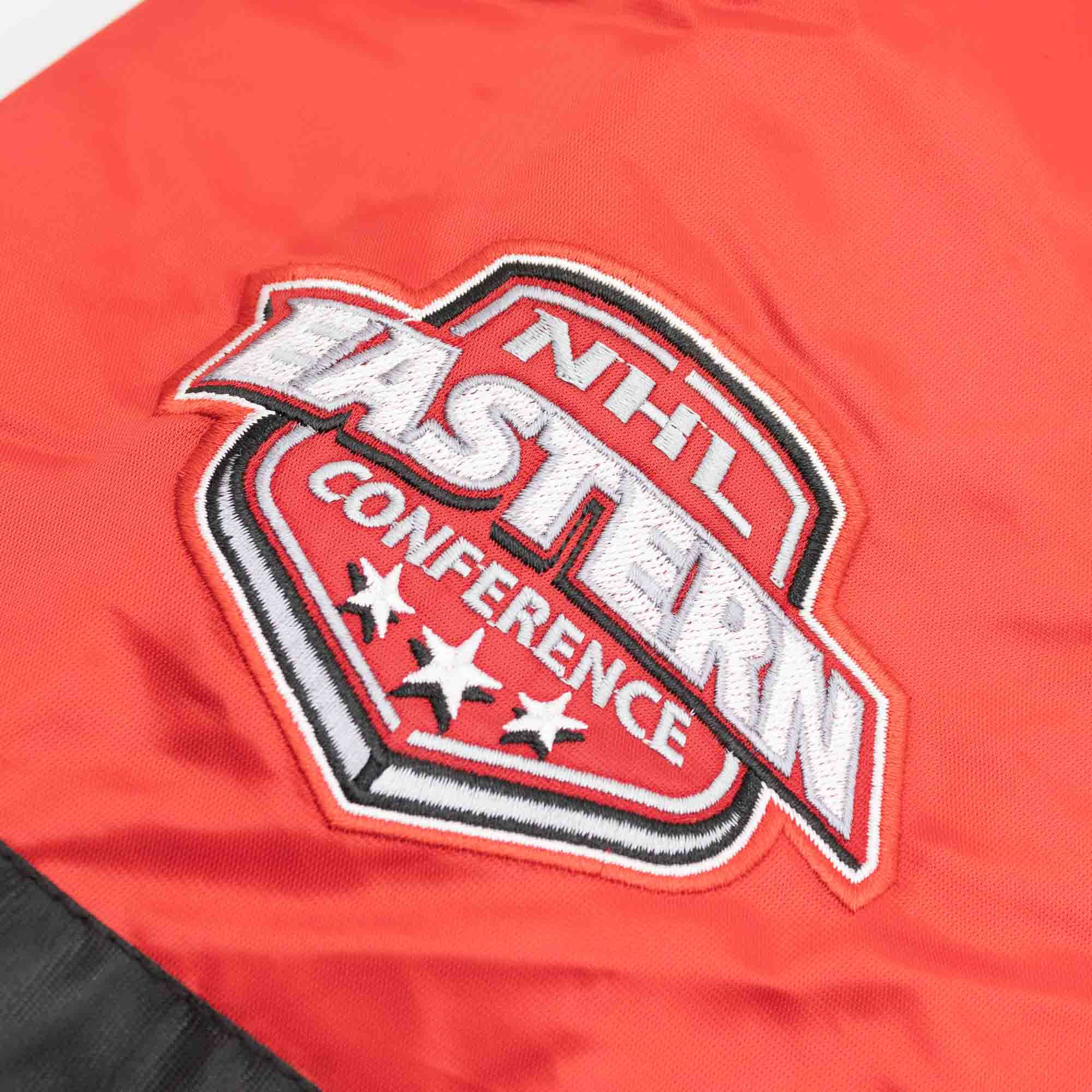 This Starter Varsity Satin Jacket comes in a modern US sports design and impresses with the fully embroidered team applications and the contrasting stripes on the shoulders. The front of the jacket features large Detroit Red Wings team lettering, the back is decorated with the oversized team logo. The unique starter design is rounded off with the conference logo on the right sleeve. The legendary Starter logo can be found on the left sleeve as a high-quality embroidery, as well as in the collar and on the inside pocket as a sewn-on label.
