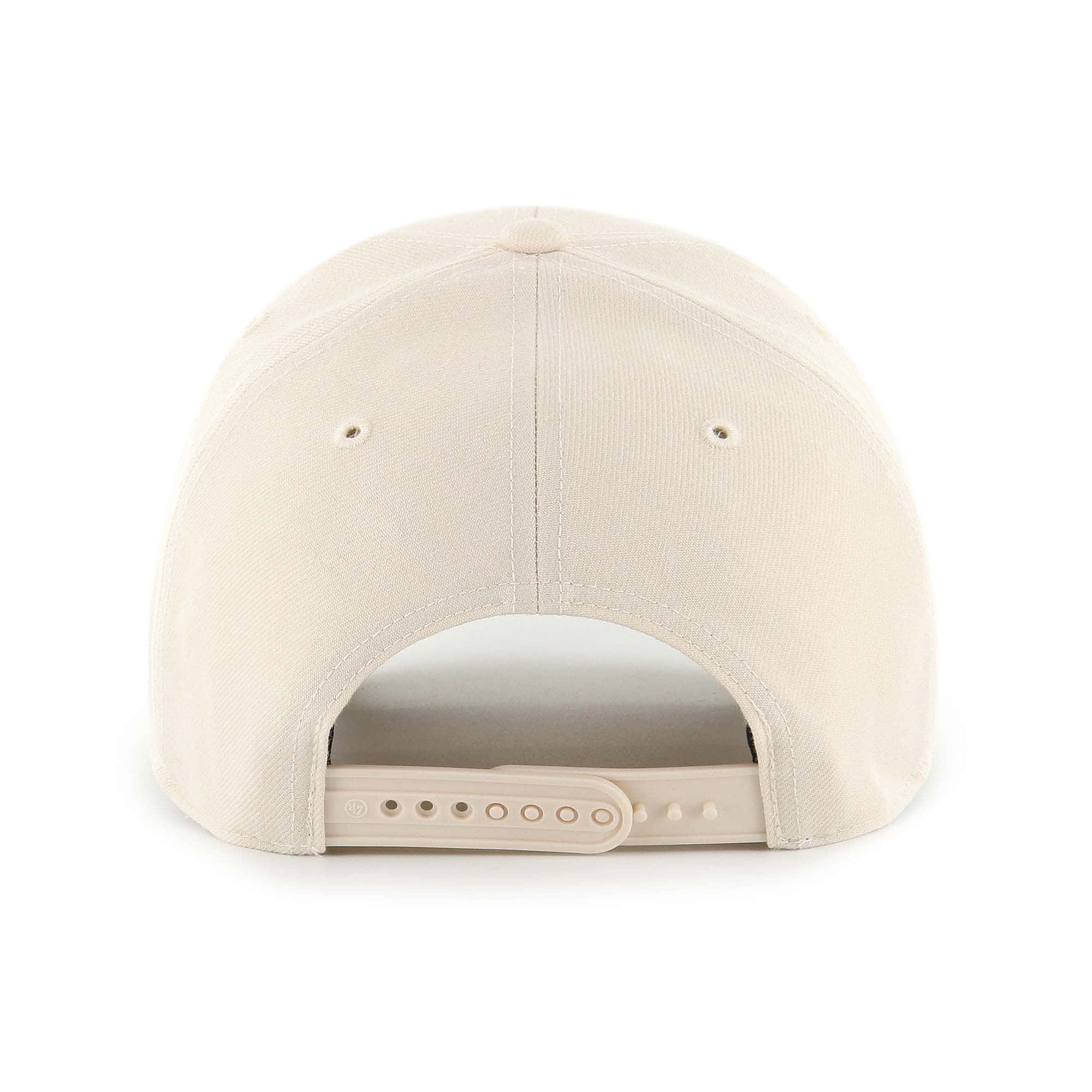 '47 Brand MVP fit with low, structured crown and curved brim. The six panel construction features breathable eyelets with a curved visor and button at top. '47 Brand logo on left side. Open back with adjustable snapback.