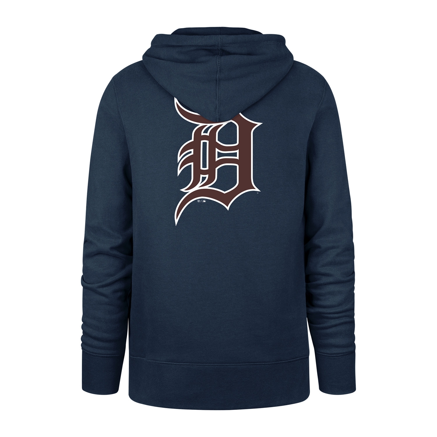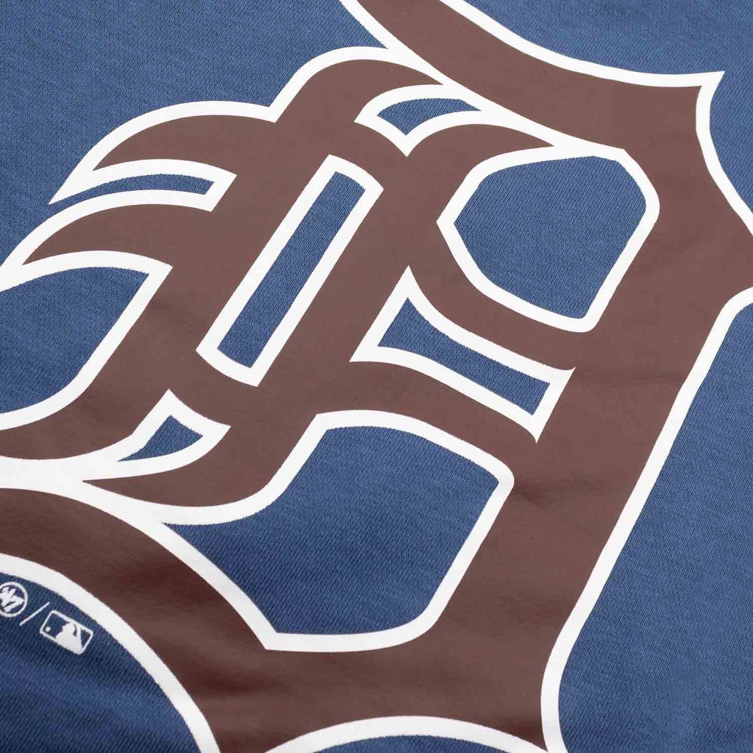 The '47 Burnside MLB pullover hoodie is made from a heavy 320 GSM poly cotton fabric with a cozy brushed fleece interior. Heavy ribbed details at the cuffs. Detroit Tigers team wordmark print on front and team logo on back.