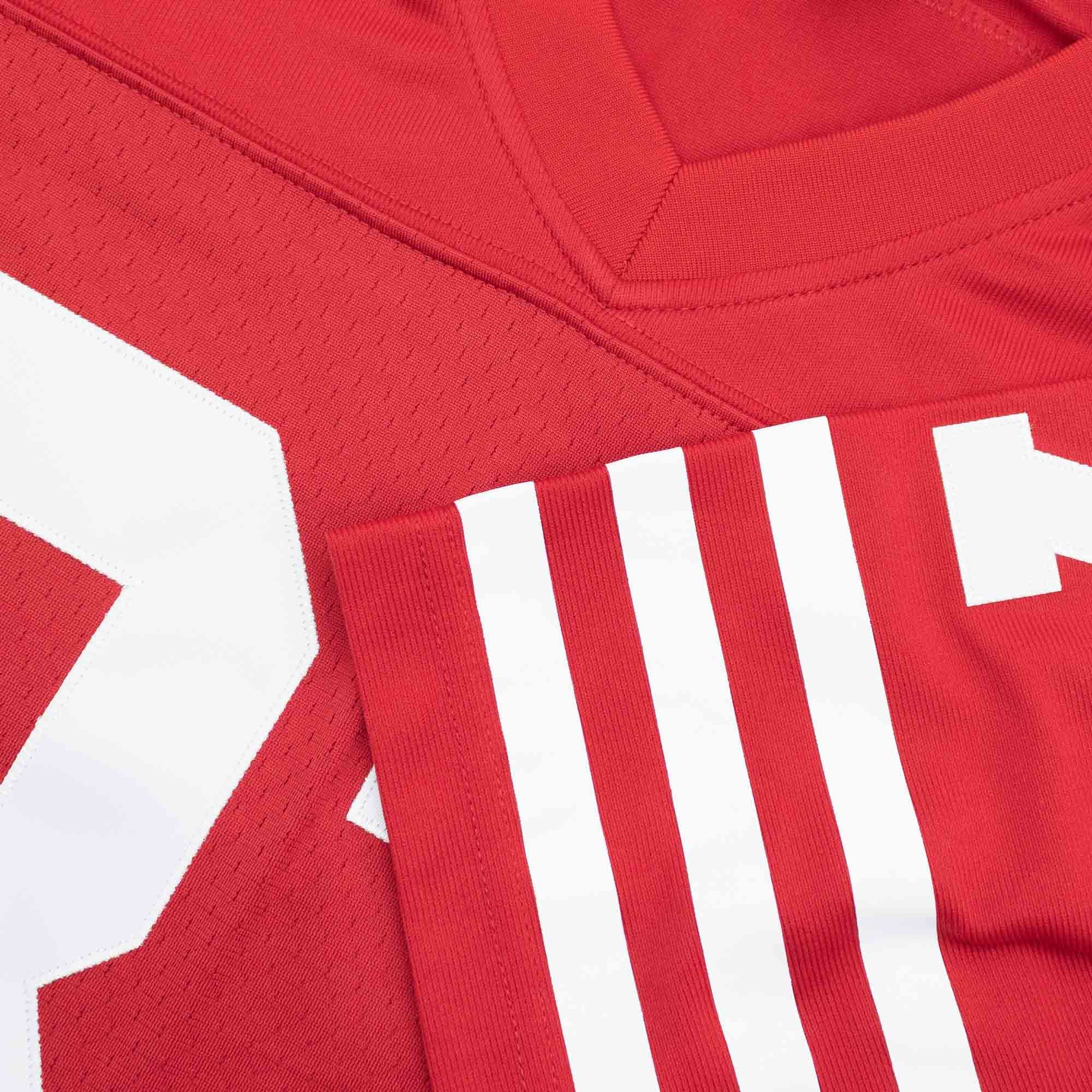 Rep your favorite team and player anytime in the NFL Throwback Jersey, inspired by what the San Francisco 49ers have worn on the field and designed for total comfort. High quality stitched letters and numbers, strategic ventilation for breathability, body made from 100% polyester, woven NFL-Mitchell & Ness tag (Legacy Collection) at front lower left.