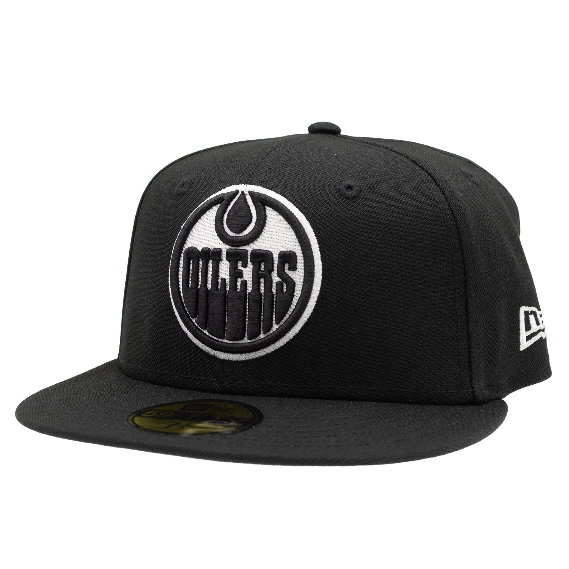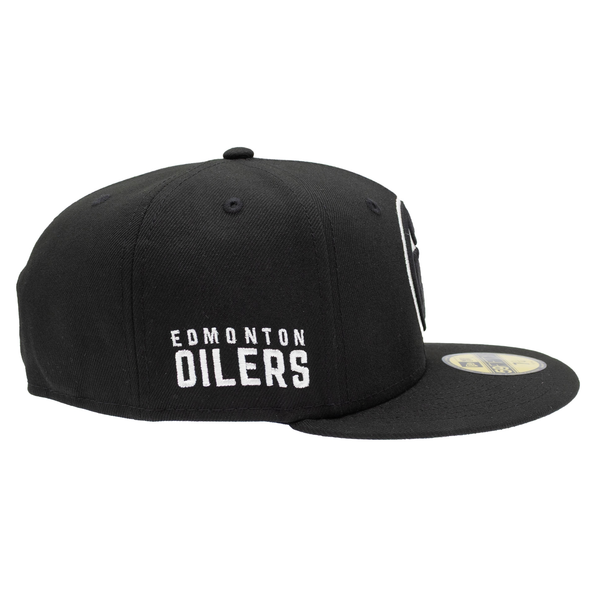 New Era NHL 59FIFTY Fitted Ice Hockey Hat from your Edmonton Oilers featuring Black & Chrome Styling.